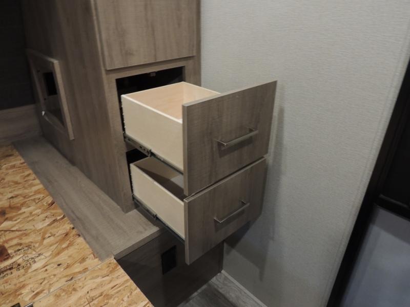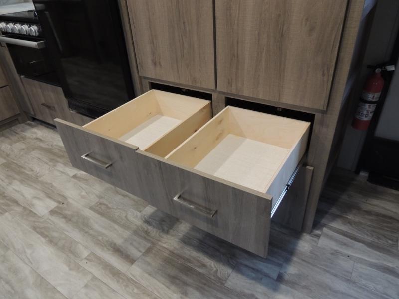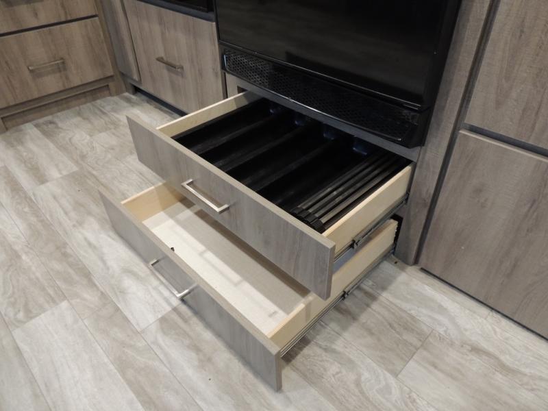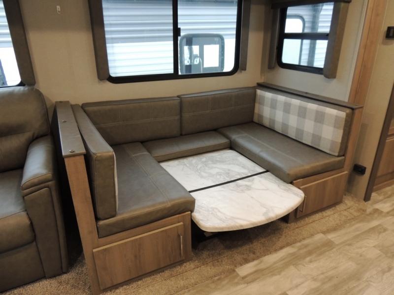 Just imagine leaving the world behind and secluding yourself away with your favorite people in your Grand Design Imagine travel trailer! The Imagine has been designed to enjoy extended season camping with its Four-Season Protection Package. This package includes a high-capacity furnace, a heated and enclosed underbelly with suspended tanks, a designated heat duct to the subfloor, and a high-density roof insulation with attic vent. You'll have maximum head room on the interior with 81" radius ceilings, and there is motion-sensor LED lighting in key areas so that you don't have to search for light switches in the dark. The exclusive drop-frame pass-through storage compartment is going to allow you to bring along lots of equipment, and the universal docking station is an all-in-one location for utilities and hook-ups. You'll also have industry-leading tank capacities so that you can fill and empty your tanks less often.