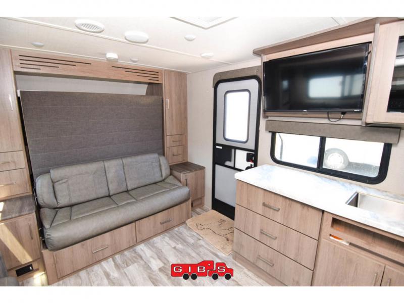 The Murphy bed is the eye-catching feature on this Imagine XLS travel trailer! Not only can it fold away in the morning to reveal a sofa for lounging, but it will also provide you with drawer storage under the sofa. Another functional feature is the theater dinette with a removable table in front. It rests on the single slide so that there is more floor space, and it offers you great comfort while you dine across from the LED HDTV. A full bathroom will keep you clean and fresh with its residential walk-in shower, skylight, linen closet, vanity, toilet, and power vent fan.