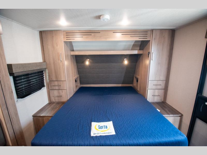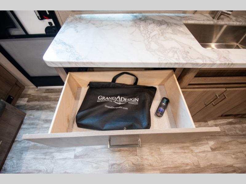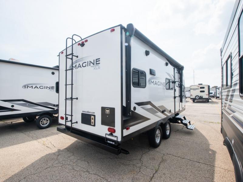 Let your imagination run wild with the possibilities that the Grand Design Imagine XLS travel trailer can provide! The Imagine XLS has been built with oversized tank capacities, an extra-large 2" fresh water drain valve, a ducted A/C system, a power tongue jack, and a heated and enclosed underbelly with suspended tanks. There is a designated heat duct to the subfloor and a residential ductless heating system throughout. For outdoor adventures, the electric awning with LED lights will enable you to stay protected, and the exterior speakers make any time outside a party. You will also love the XLS Solar Package that comes with a 165W roof mounted solar panel, a 25 Amp charge controller, a 12V 10 cu. ft. refrigerator, and roof mounted quick connect plugs!