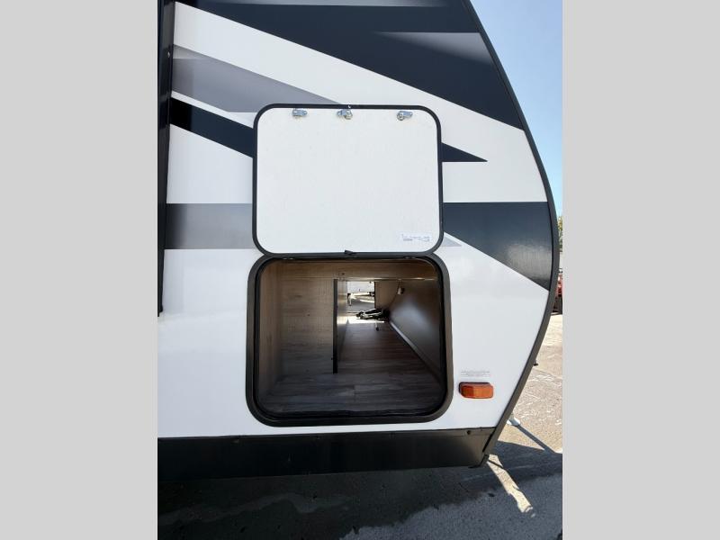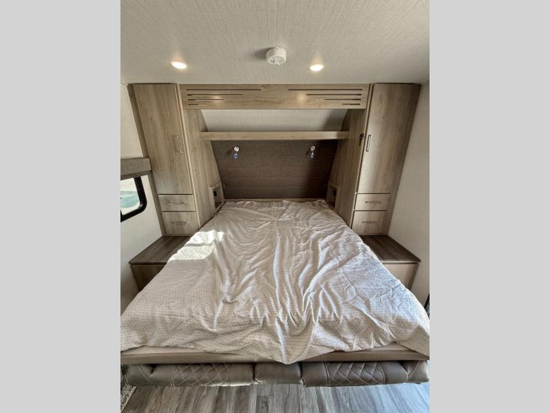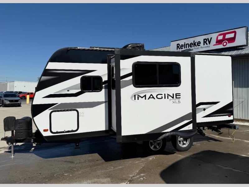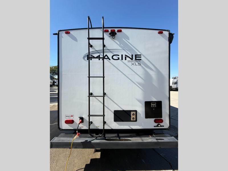 Let your imagination run wild with the possibilities that the Grand Design Imagine XLS travel trailer can provide! The Imagine XLS has been built with oversized tank capacities, an extra-large 2" fresh water drain valve, a ducted A/C system, a power tongue jack, and a heated and enclosed underbelly with suspended tanks. There is a designated heat duct to the subfloor and a residential ductless heating system throughout. For outdoor adventures, the electric awning with LED lights will enable you to stay protected, and the exterior speakers make any time outside a party. You will also love the XLS Solar Package that comes with a 165W roof mounted solar panel, a 25 Amp charge controller, a 12V 10 cu. ft. refrigerator, and roof mounted quick connect plugs!