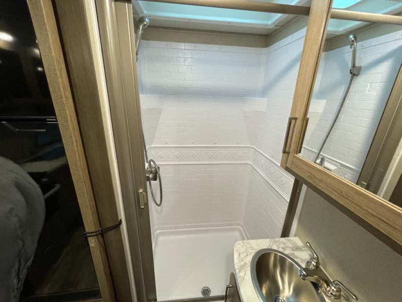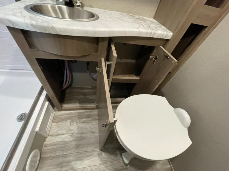 The Murphy bed is the eye-catching feature on this Imagine XLS travel trailer! Not only can it fold away in the morning to reveal a sofa for lounging, but it will also provide you with drawer storage under the sofa. Another functional feature is the theater dinette with a removable table in front. It rests on the single slide so that there is more floor space, and it offers you great comfort while you dine across from the LED HDTV. A full bathroom will keep you clean and fresh with its residential walk-in shower, skylight, linen closet, vanity, toilet, and power vent fan.