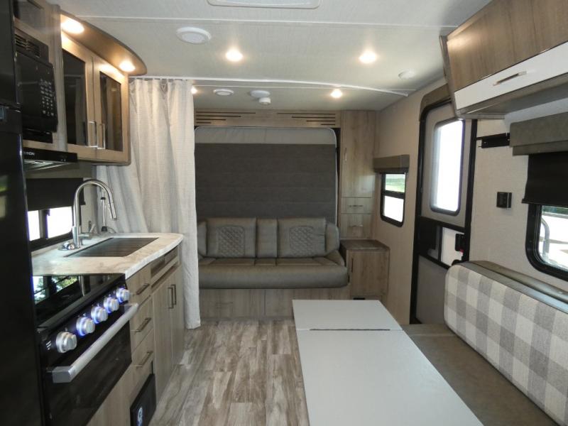 Can you think of anything better than a weekend in this Imagine XLS travel trailer! You will never miss home when you see all of the amenities included on this trailer. There is a full bathroom for easy morning routines, a set of double-size bunks with privacy curtains for compact sleeping, shoe storage, a full kitchen with all of the appliances needed for filling meals, and a privacy curtain in the front that sections off the queen Murphy bed. In addition to all of that, you'll also find an outdoor kitchen that you can use when the weather is nice. The unobstructed pass-through storage will be able to store your fishing poles and sports equipment while you travel.