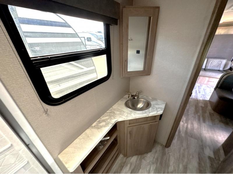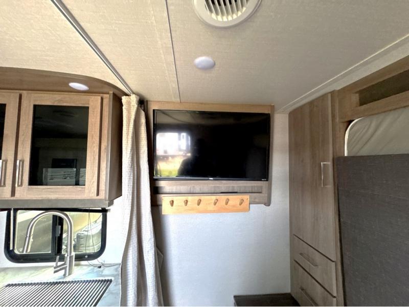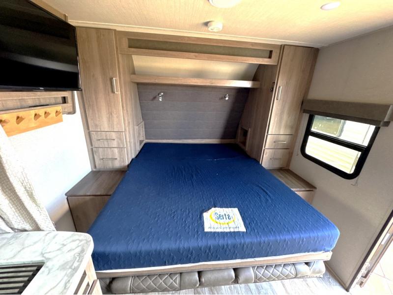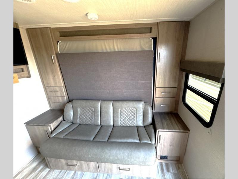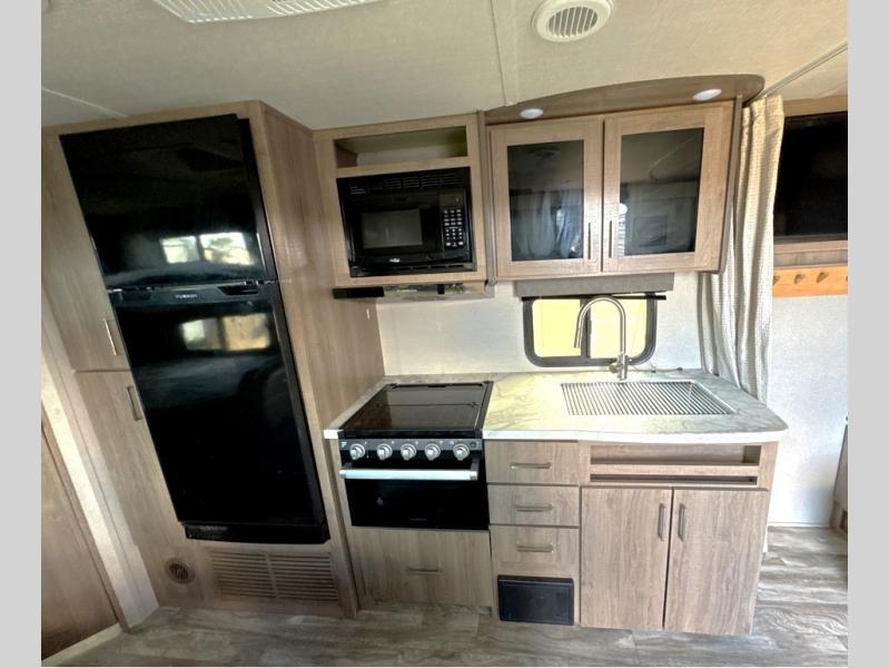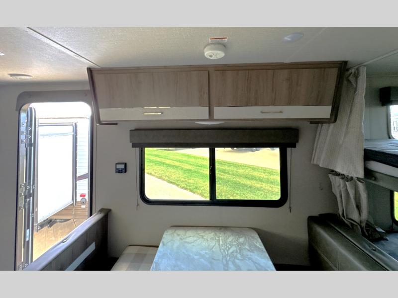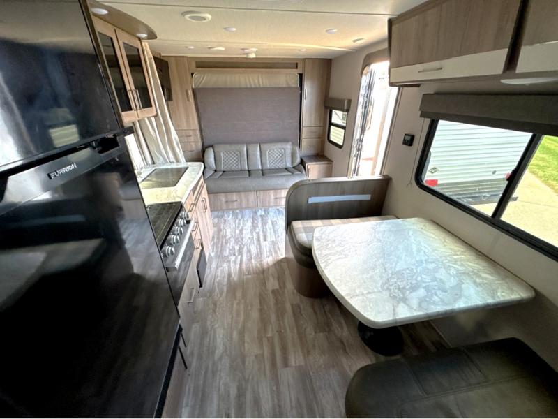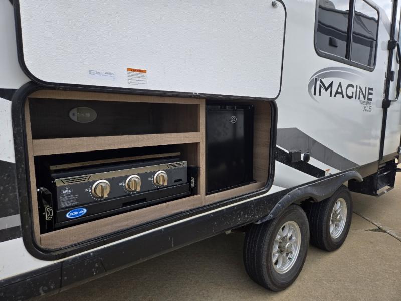 Can you think of anything better than a weekend in this Imagine XLS travel trailer! You will never miss home when you see all of the amenities included on this trailer. There is a full bathroom for easy morning routines, a set of double-size bunks with privacy curtains for compact sleeping, shoe storage under the booth dinette, a full kitchen with all of the appliances needed for filling meals, and a privacy curtain in the front that sections off the queen Murphy bed. In addition to all of that, you'll also find an outdoor kitchen that you can use when the weather is nice. The unobstructed pass-through storage will be able to store your fishing poles and sports equipment while you travel.
