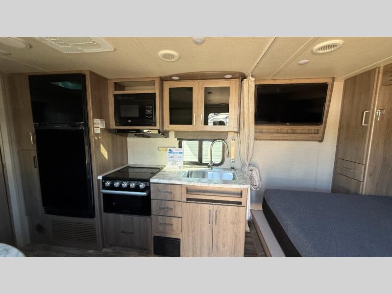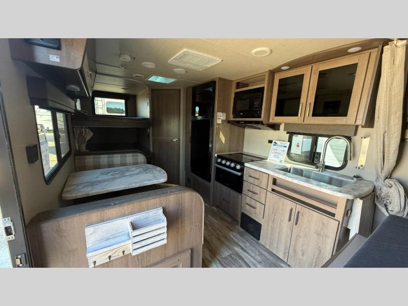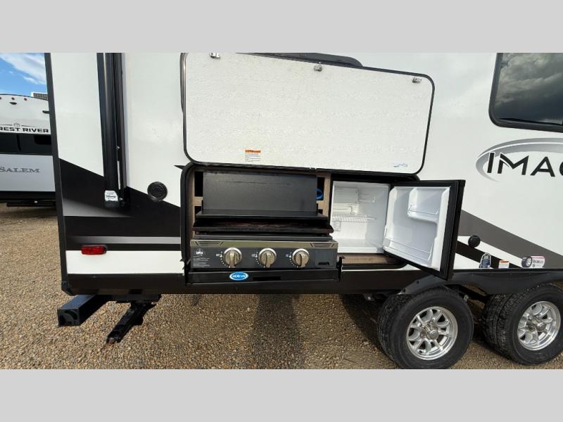 Can you think of anything better than a weekend in this Imagine XLS travel trailer! You will never miss home when you see all of the amenities included on this trailer. There is a full bathroom for easy morning routines, a set of double-size bunks with privacy curtains for compact sleeping, shoe storage under the booth dinette, a full kitchen with all of the appliances needed for filling meals, and a privacy curtain in the front that sections off the queen Murphy bed. In addition to all of that, you'll also find an outdoor kitchen that you can use when the weather is nice. The unobstructed pass-through storage will be able to store your fishing poles and sports equipment while you travel.