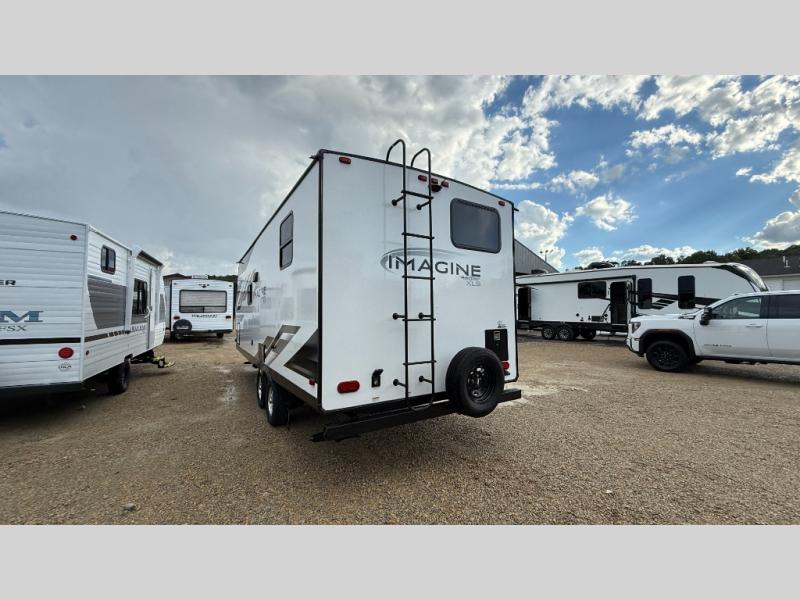Let your imagination run wild with the possibilities that the Grand Design Imagine XLS travel trailer can provide! The Imagine XLS has been built with oversized tank capacities, an extra-large 2" fresh water drain valve, a ducted A/C system, a power tongue jack, and a heated and enclosed underbelly with suspended tanks. There is a designated heat duct to the subfloor and a residential ductless heating system throughout. For outdoor adventures, the electric awning with LED lights will enable you to stay protected, and the exterior speakers make any time outside a party. You will also love the XLS Solar Package that comes with a 165W roof mounted solar panel, a 25 Amp charge controller, a 12V 10 cu. ft. refrigerator, and roof mounted quick connect plugs!
