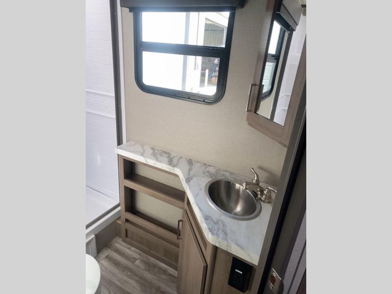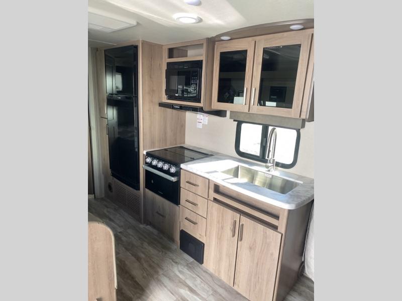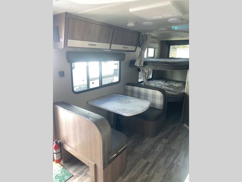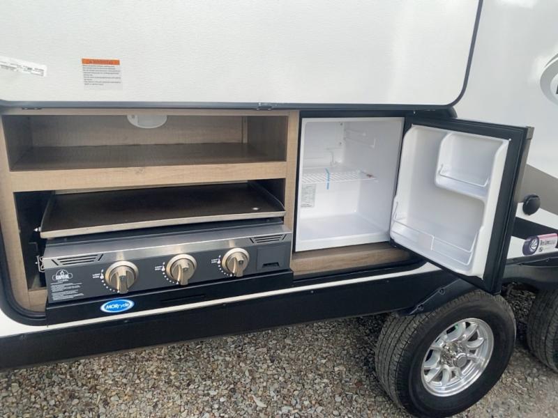 Can you think of anything better than a weekend in this Imagine XLS travel trailer! You will never miss home when you see all of the amenities included on this trailer. There is a full bathroom for easy morning routines, a set of double-size bunks with privacy curtains for compact sleeping, shoe storage under the booth dinette, a full kitchen with all of the appliances needed for filling meals, and a privacy curtain in the front that sections off the queen Murphy bed. In addition to all of that, you'll also find an outdoor kitchen that you can use when the weather is nice. The unobstructed pass-through storage will be able to store your fishing poles and sports equipment while you travel.
