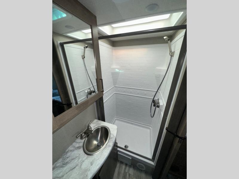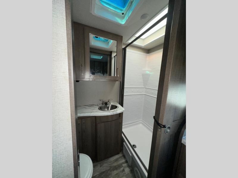 Let your imagination run wild with the possibilities that the Grand Design Imagine XLS travel trailer can provide! The Imagine XLS has been built with oversized tank capacities, an extra-large 2" fresh water drain valve, a ducted A/C system, a power tongue jack, and a heated and enclosed underbelly with suspended tanks. There is a designated heat duct to the subfloor and a residential ductless heating system throughout. For outdoor adventures, the electric awning with LED lights will enable you to stay protected, and the exterior speakers make any time outside a party. You will also love the XLS Solar Package that comes with a 165W roof mounted solar panel, a 25 Amp charge controller, a 12V 10 cu. ft. refrigerator, and roof mounted quick connect plugs!