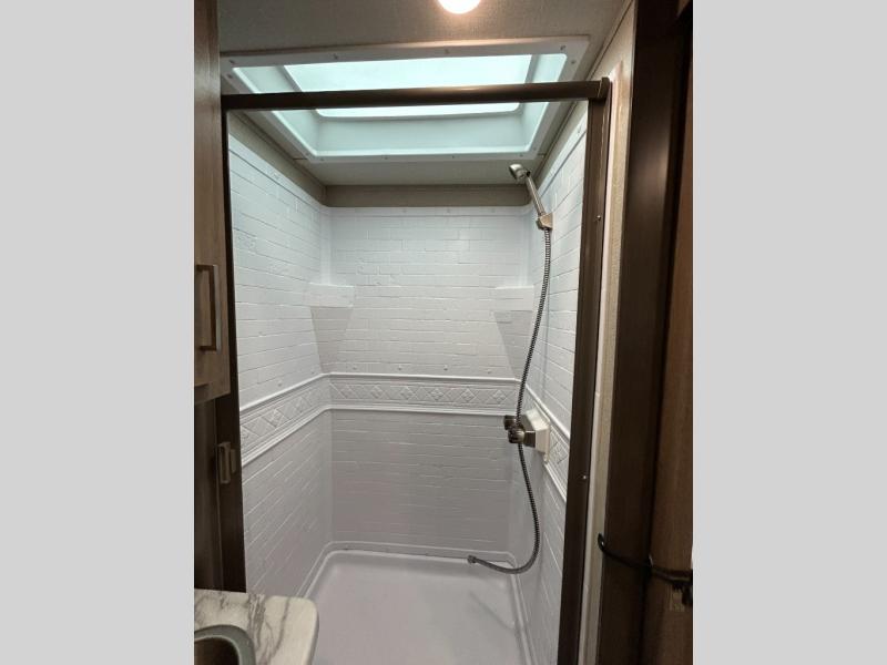 Let your imagination run wild with the possibilities that the Grand Design Imagine XLS travel trailer can provide! The Imagine XLS has been built with oversized tank capacities, an extra-large 2" fresh water drain valve, a ducted A/C system, a power tongue jack, and a heated and enclosed underbelly with suspended tanks. There is a designated heat duct to the subfloor and a residential ductless heating system throughout. For outdoor adventures, the electric awning with LED lights will enable you to stay protected, and the exterior speakers make any time outside a party. You will also love the XLS Solar Package that comes with a 165W roof mounted solar panel, a 25 Amp charge controller, a 12V 10 cu. ft. refrigerator, and roof mounted quick connect plugs!