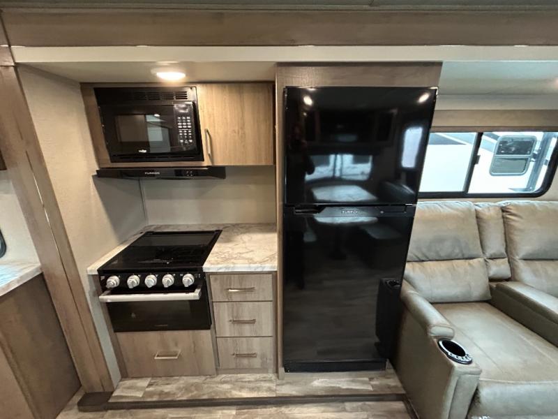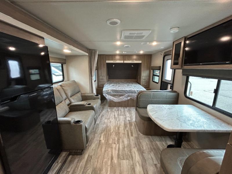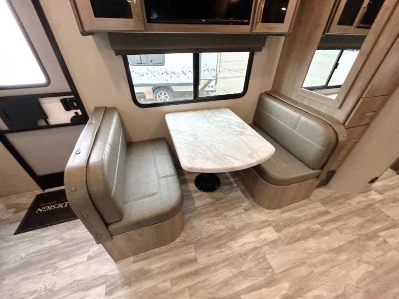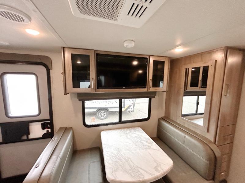 This Imagine XLS travel trailer has theater seating and a booth dinette that you can use any time you need a little break from the outdoors. If you want to come in and grab a coffee, put together a puzzle, or work on your itinerary for the week, just put up your feet and relax. You could even switch on the LED HDTV if you want a little entertainment. The front queen-size bed has a privacy curtain that you can draw to create a semi-private bedroom, and in the back of the trailer you will find the rest of your amenities, like the kitchen and the bathroom. The large slide makes it easy to enjoy spending your time indoors, but if you do want to get back outside, you can sit underneath the 18' electric awning for some shade.