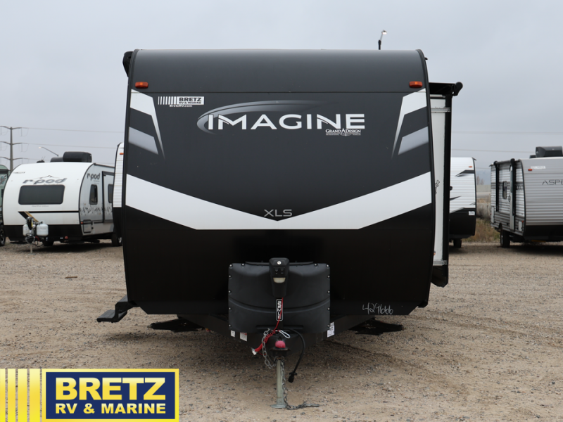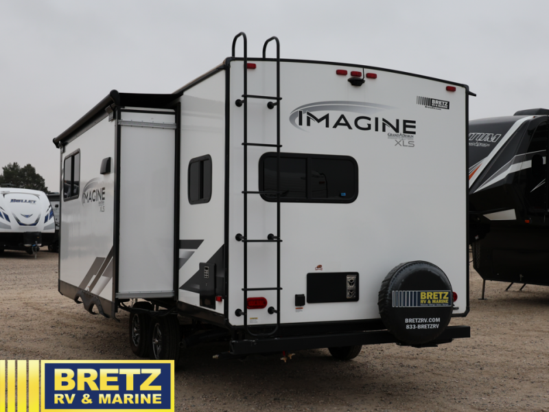 Let your imagination run wild with the possibilities that the Grand Design Imagine XLS travel trailer can provide! The Imagine XLS has been built with oversized tank capacities, an extra-large 2" fresh water drain valve, a ducted A/C system, a power tongue jack, and a heated and enclosed underbelly with suspended tanks. There is a designated heat duct to the subfloor and a residential ductless heating system throughout. For outdoor adventures, the electric awning with LED lights will enable you to stay protected, and the exterior speakers make any time outside a party. You will also love the XLS Solar Package that comes with a 165W roof mounted solar panel, a 25 Amp charge controller, a 12V 10 cu. ft. refrigerator, and roof mounted quick connect plugs!