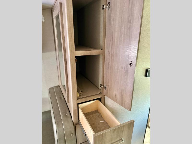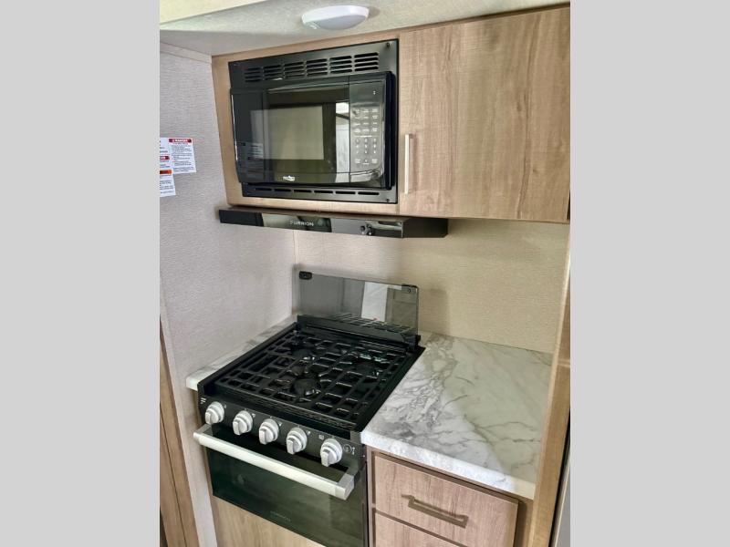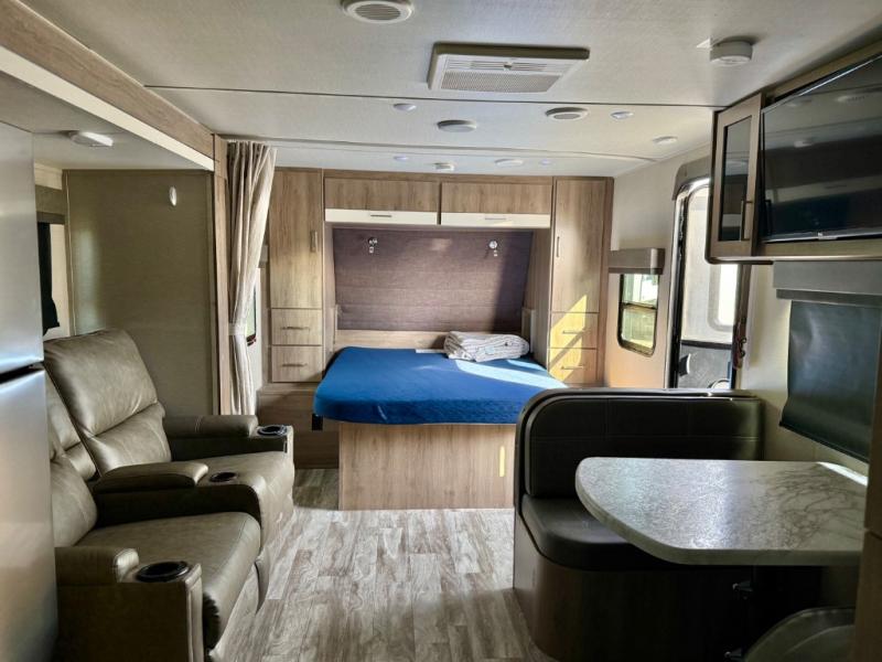 This Imagine XLS travel trailer has theater seating and a booth dinette that you can use any time you need a little break from the outdoors. If you want to come in and grab a coffee, put together a puzzle, or work on your itinerary for the week, just put up your feet and relax. You could even switch on the LED HDTV if you want a little entertainment. The front queen-size bed has a privacy curtain that you can draw to create a semi-private bedroom, and in the back of the trailer you will find the rest of your amenities, like the kitchen and the bathroom. The large slide makes it easy to enjoy spending your time indoors, but if you do want to get back outside, you can sit underneath the 18' electric awning for some shade.