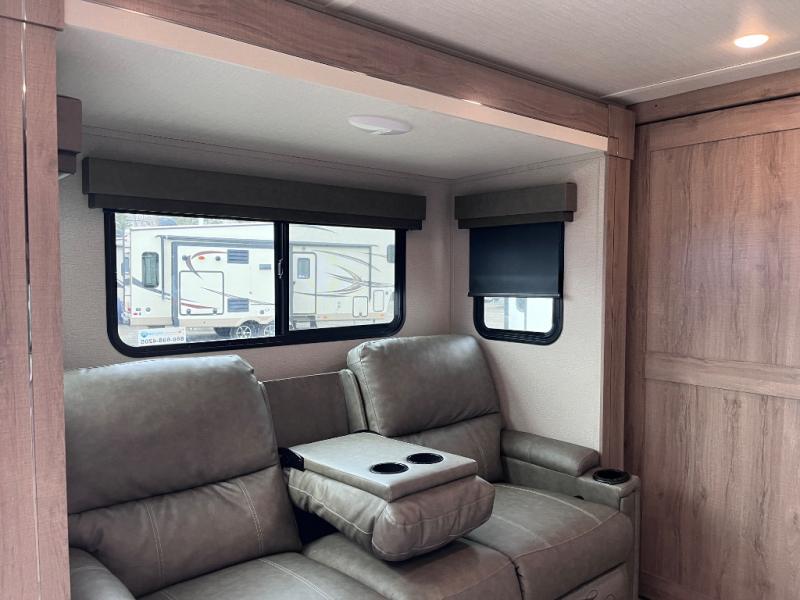 Let your imagination run wild with the possibilities that the Grand Design Imagine XLS travel trailer can provide! The Imagine XLS has been built with oversized tank capacities, an extra-large 2" fresh water drain valve, a ducted A/C system, a power tongue jack, and a heated and enclosed underbelly with suspended tanks. There is a designated heat duct to the subfloor and a residential ductless heating system throughout. For outdoor adventures, the electric awning with LED lights will enable you to stay protected, and the exterior speakers make any time outside a party. You will also love the XLS Solar Package that comes with a 165W roof mounted solar panel, a 25 Amp charge controller, a 12V 10 cu. ft. refrigerator, and roof mounted quick connect plugs!