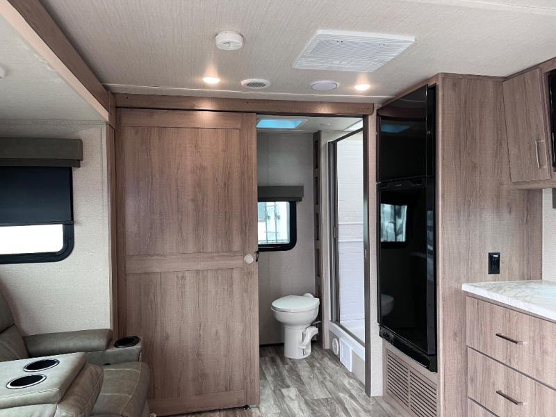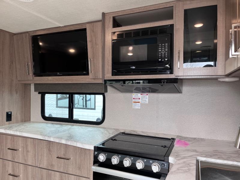 This Imagine XLS travel trailer was constructed just for you and your significant other! It has all of the essentials a couple could need, like a full rear bathroom with a residential walk-in shower, a theater dinette with removable table where you can eat your meals, a full kitchen with a microwave and three-burner range with an oven, and a private bedroom with a walk-around queen-size bed so that both of you have your own side. There are a couple of extras that will make your time away even more special, like the LED HDTV, the Bluetooth stereo, the USB charging station, and the exterior coax TV hookup.