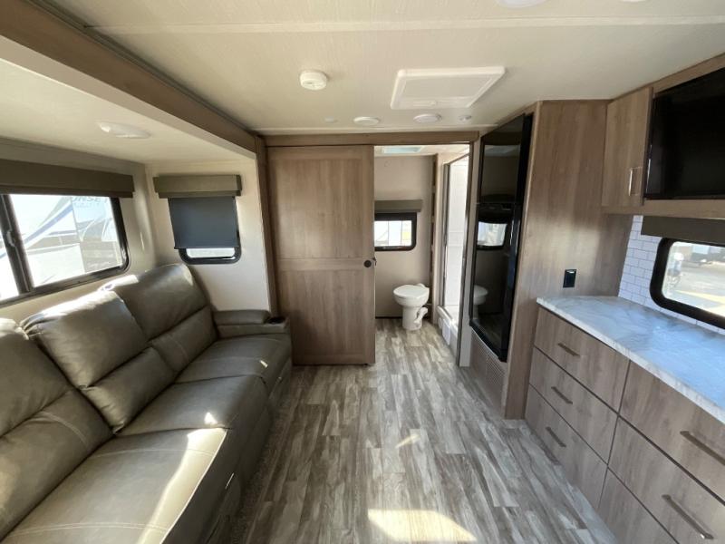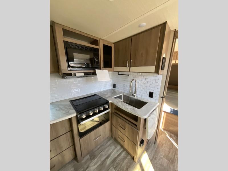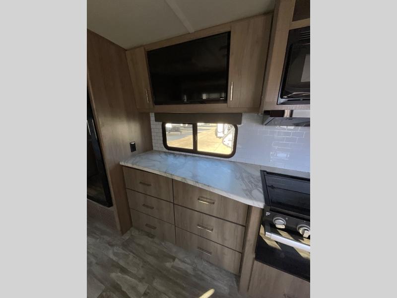 This Imagine XLS travel trailer was constructed just for you and your significant other! It has all of the essentials a couple could need, like a full rear bathroom with a residential walk-in shower, a theater dinette with removable table where you can eat your meals, a full kitchen with a microwave and three-burner range with an oven, and a private bedroom with a walk-around queen-size bed so that both of you have your own side. There are a couple of extras that will make your time away even more special, like the LED HDTV, the Bluetooth stereo, the USB charging station, and the exterior coax TV hookup.