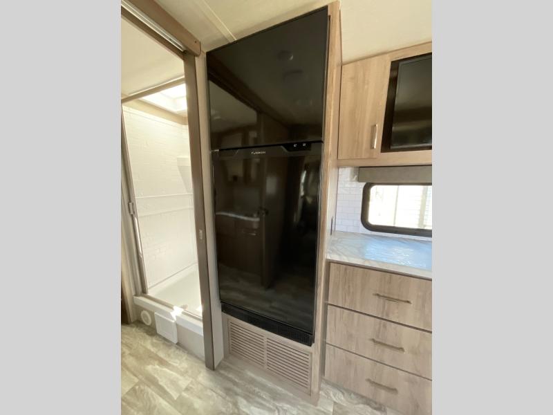 Let your imagination run wild with the possibilities that the Grand Design Imagine XLS travel trailer can provide! The Imagine XLS has been built with oversized tank capacities, an extra-large 2" fresh water drain valve, a ducted A/C system, a power tongue jack, and a heated and enclosed underbelly with suspended tanks. There is a designated heat duct to the subfloor and a residential ductless heating system throughout. For outdoor adventures, the electric awning with LED lights will enable you to stay protected, and the exterior speakers make any time outside a party. You will also love the XLS Solar Package that comes with a 165W roof mounted solar panel, a 25 Amp charge controller, a 12V 10 cu. ft. refrigerator, and roof mounted quick connect plugs!