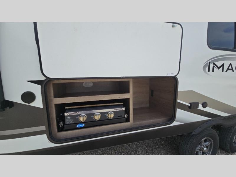 Let your imagination run wild with the possibilities that the Grand Design Imagine XLS travel trailer can provide! The Imagine XLS has been built with oversized tank capacities, an extra-large 2" fresh water drain valve, a ducted A/C system, a power tongue jack, and a heated and enclosed underbelly with suspended tanks. There is a designated heat duct to the subfloor and a residential ductless heating system throughout. For outdoor adventures, the electric awning with LED lights will enable you to stay protected, and the exterior speakers make any time outside a party. You will also love the XLS Solar Package that comes with a 165W roof mounted solar panel, a 25 Amp charge controller, a 12V 10 cu. ft. refrigerator, and roof mounted quick connect plugs!