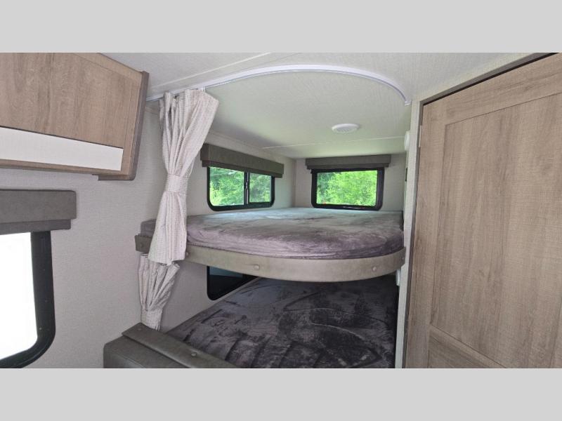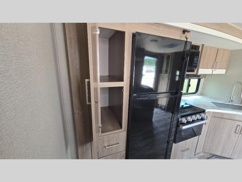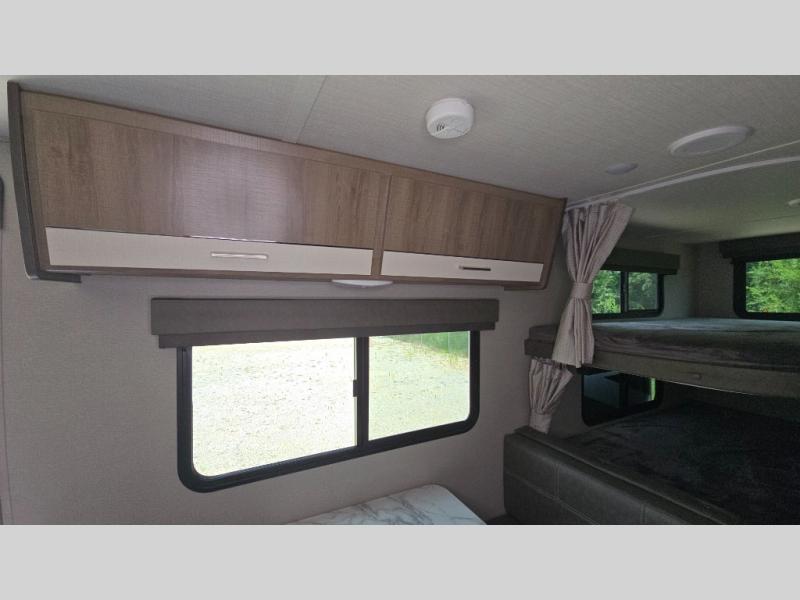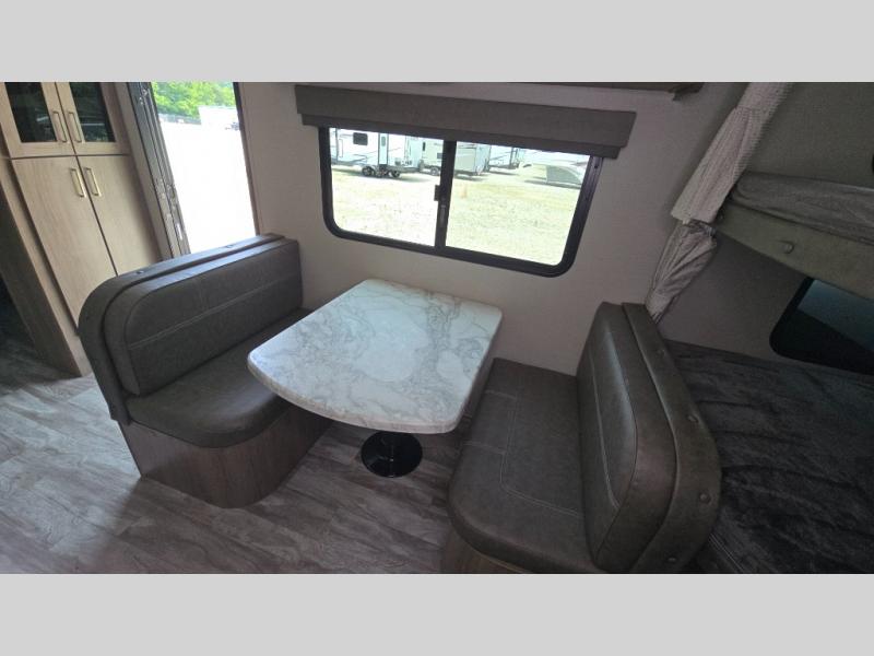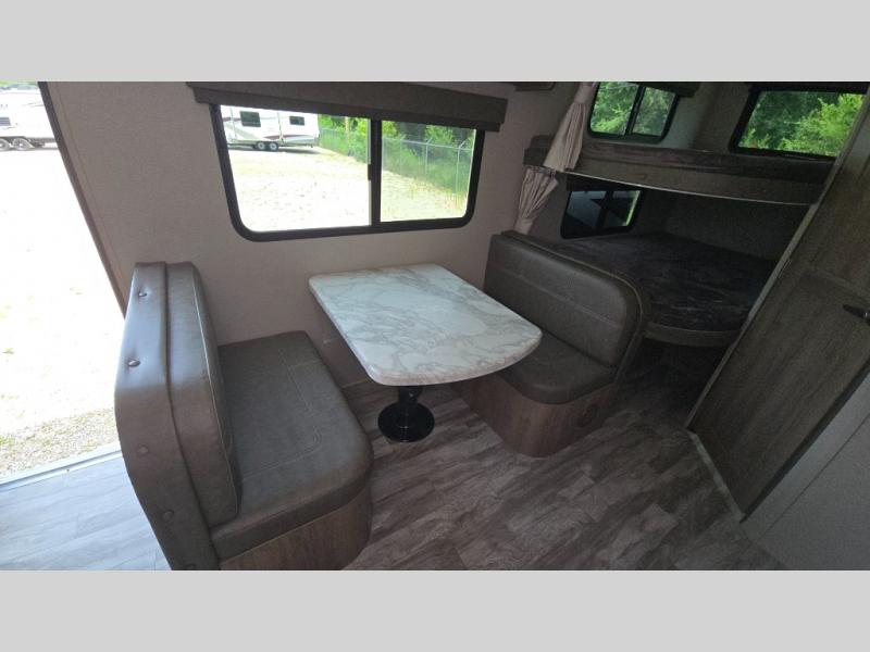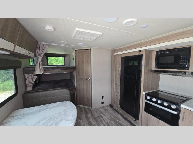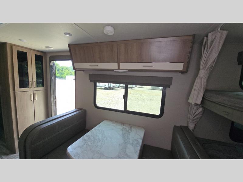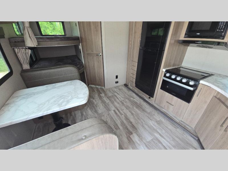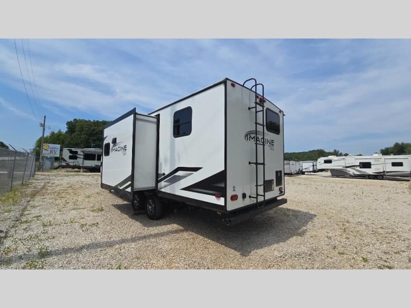 It won't be long before you have another trip with this Imagine XLS travel trailer on the agenda! You will find a walk-around queen-size bed up front in the private bedroom, and right next to the entry door is a coat closet so that you can hang up your coats when you come inside. The booth dinette is right next to the window, so you can look out at your surroundings while you enjoy breakfast. The double-size bunks have some privacy curtains, and the bunks are right next to the full bathroom for easy access in the middle of the night. The kitchen rests on the single slide which gives you more space to get dinner in the oven, and you can have some more prep space by using the flip-up countertop extension.