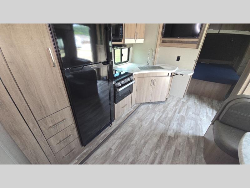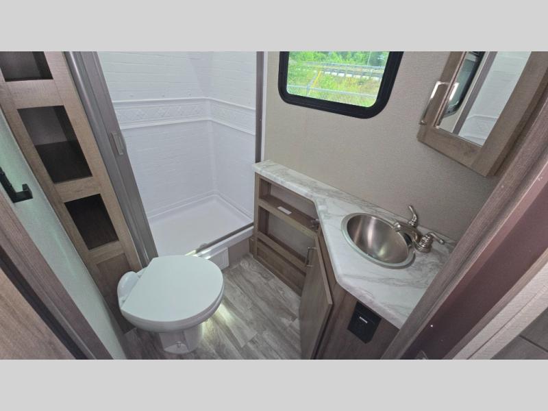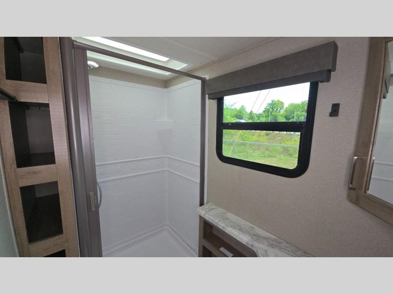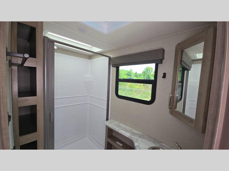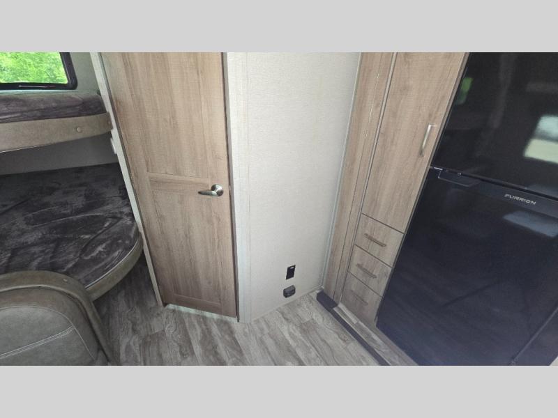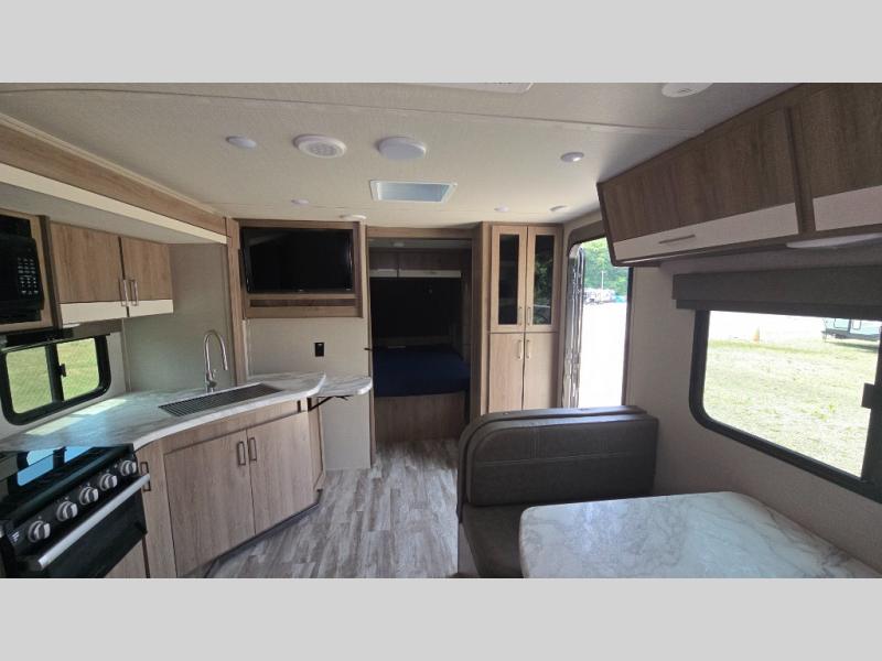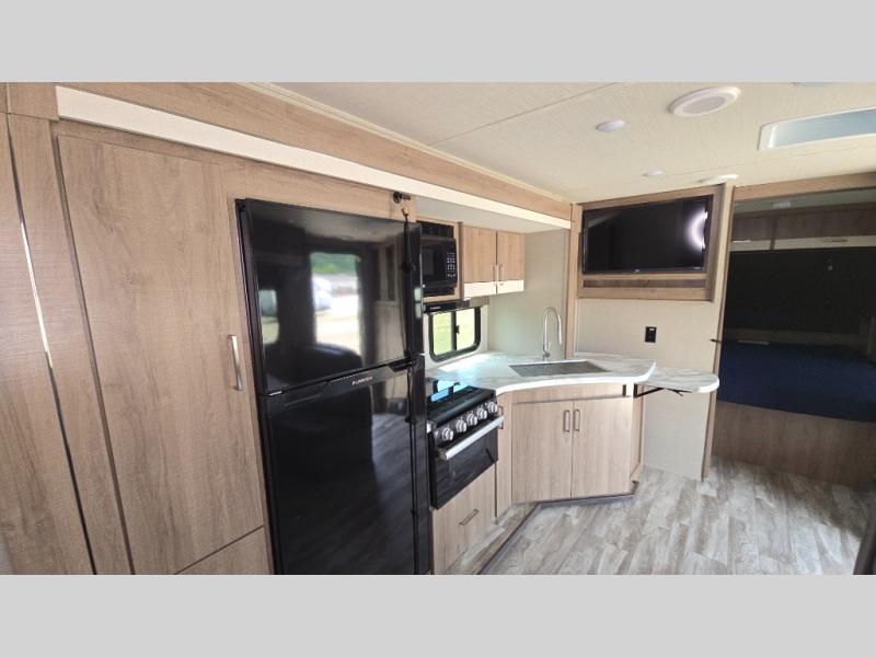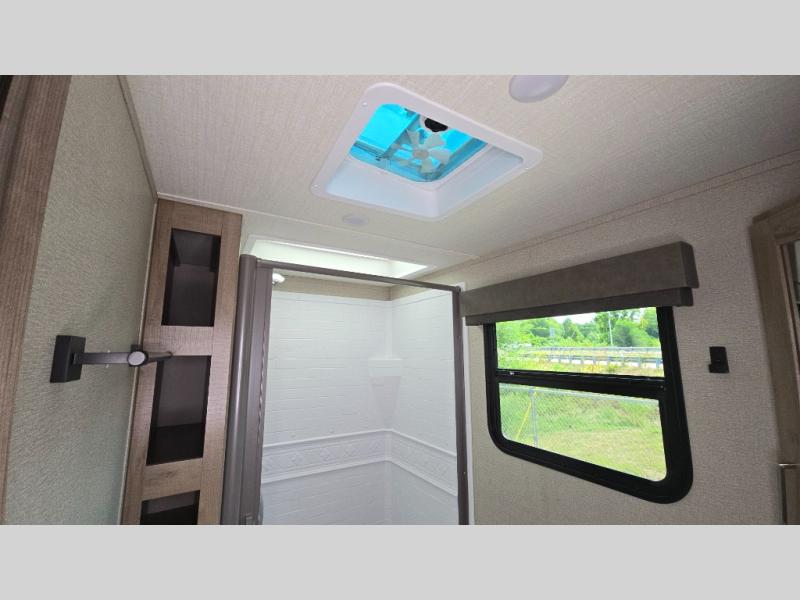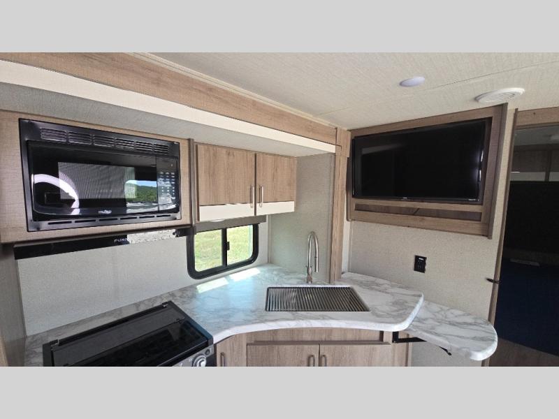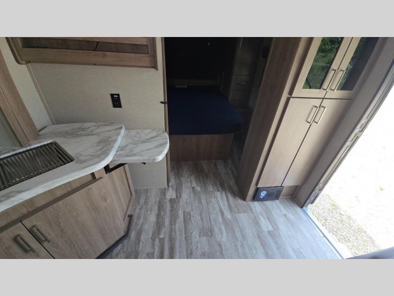 It won't be long before you have another trip with this Imagine XLS travel trailer on the agenda! You will find a walk-around queen-size bed up front in the private bedroom, and right next to the entry door is a coat closet so that you can hang up your coats when you come inside. The booth dinette is right next to the window, so you can look out at your surroundings while you enjoy breakfast. The double-size bunks have some privacy curtains, and the bunks are right next to the full bathroom for easy access in the middle of the night. The kitchen rests on the single slide which gives you more space to get dinner in the oven, and you can have some more prep space by using the flip-up countertop extension.