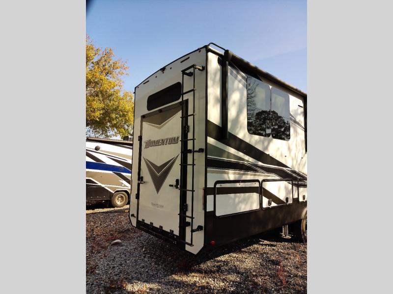 The Momentum fifth wheel toy haulers by Grand Design are built for four seasons of travel with your off-road toys and include luxurious accommodations throughout for extreme living! Each is constructed to a superior standard with the thermal roof design, the full-laminated walls, the triple insulated garage floor in most toy haulers, the insulated gooseneck and the Rail-Tite underbelly seat. The MORryde CRE3000 suspension system and rubber pin box, plus the upgraded axle hangers provide the performance and smooth towing you desire, while the interior offers luxury such as color changing LED accent lighting, raised panel hardwood cabinet doors with hidden hinges, a sofa with headrest and removable swivel tables which include heat, massage and LED lighting package, and a central vacuum system with tools and dust pan. Start your extreme playtime now with a Momentum!