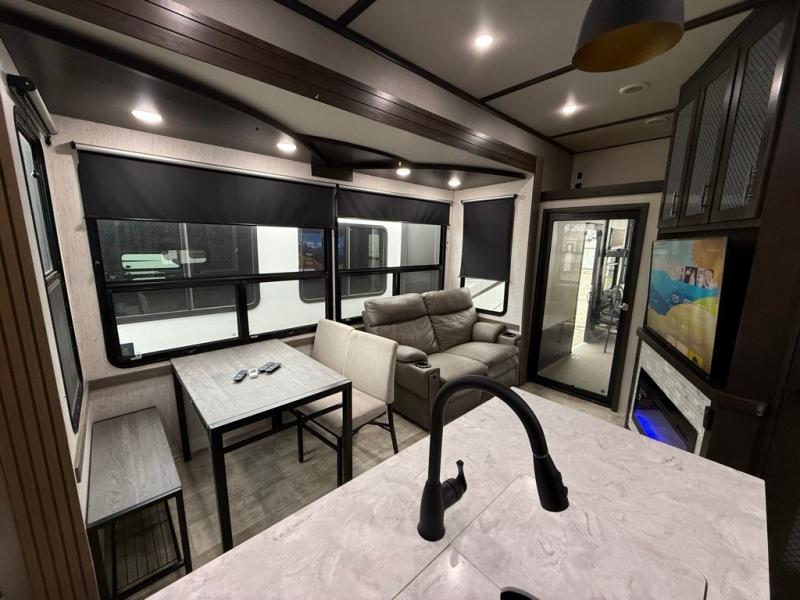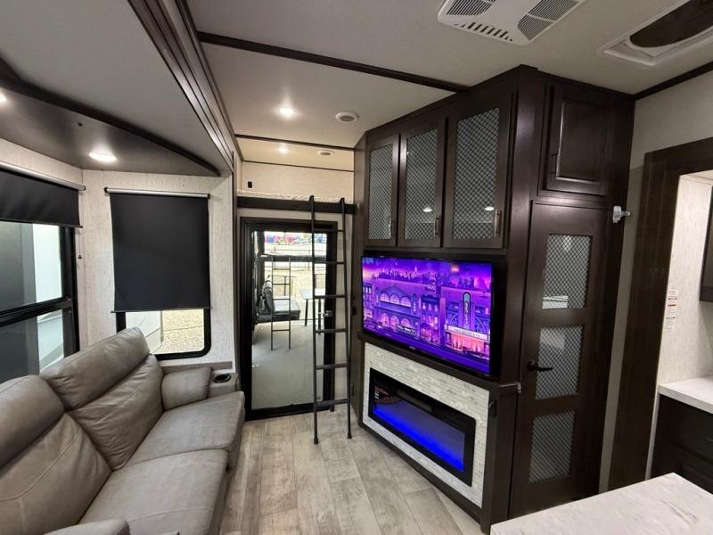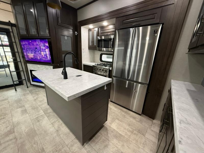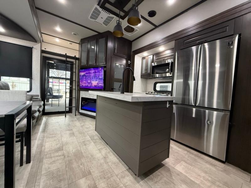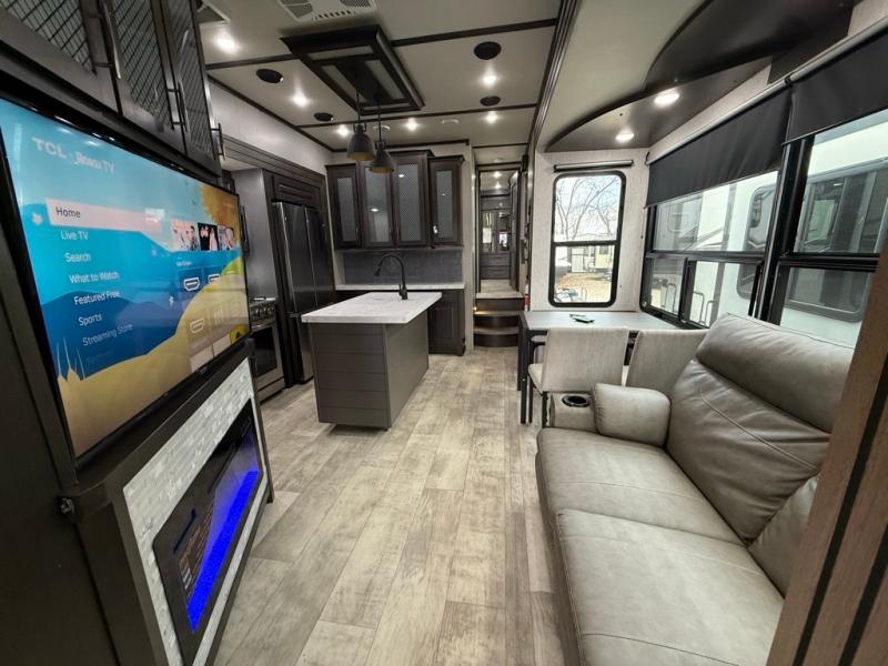 2022 GRAND DESIGN MOMENTUM 397THS-R TOY HAULER SERIES, WITH A PARTY DECK, WITH A 13' 6" DEEP GARAGE. ONAN 5500 GENERATOR WITH FACTORY SOLAR. 60 GALLON FUEL STATION, Length 44FT. 2 REAR BEDS WITH SLEEPING LOFT, 3 A/C, 2 FULL BATHROOMS, 3 SLIDES, UNDERNEATH AND OVERHEAD STORAGE COMPARTMENTS. SUPER NICE KITCHEN, MULTIPLE STORAGE CABINETS. ENTERTAINMENT AREA WITH MULTIMEDIA SOUND SYSTEM. FIREPLACE, INDOOR AND OUTDOOR SPEAKERS. OUTDOOR TV, REMOVABLE REAR DINING TABLE. DINETTE & SOFA SLEEPERS. FRONT KING BED WITH LOTS OF STORAGE. OUTDOOR SHOWER. FACTORY SOLAR, SUPER NICE UNIT. Lots Of Storage spots. Awning With LED Lighting. Sleeps 10, 3 COLD A/C. Super Clean.. SUPER NICE TRAILER ONLY 15600Lbs UVW. 50AMP POWER. OUR PRICE $59,995. SEVERAL SUPER NICE RVS TO CHOOSE FROM. We are located in KENNEDALE TX. We show Rv's 7 Days A WEEK BY APPOINTMENT. Call BRET 817*805*0067 or AMY 817*658*4633 FREE DELIVERY AVAILABLE TO ALL 48 STATES. WE INSPECT & GO THROUGH ALL TRAILERS TO ENSURE OUR CUSTOMERS ARE 100% SATISFIED. SE HABLA ESPANOL!