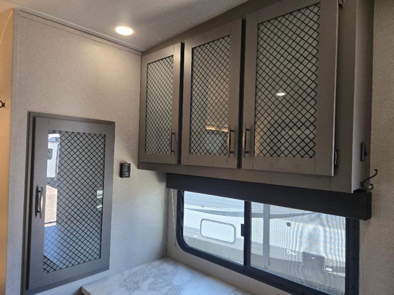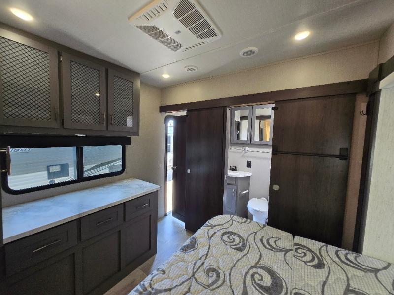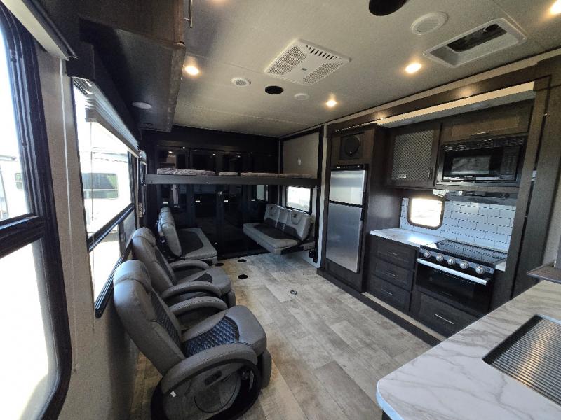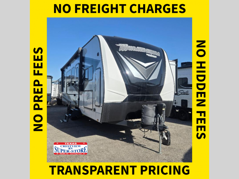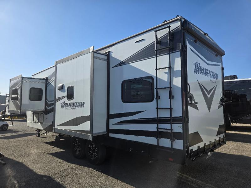 Are you looking for adventure and fun? The Momentum G-Class toy hauler by Grand Design will help you find it! You can explore during any season you choose with the Insulation Package that includes a heated and enclosed underbelly with suspended tanks, a high-capacity furnace, a moisture barrier floor enclosure, and cabinet-mounted heat ducts. Each model includes a 30-gallon fuel station with an interior and exterior gauge, a dovetail rear rend, and 2,500-LB tie-downs anchored into the chassis. Throughout the Momentum G-Class interior, you'll enjoy many comfortable features like large panoramic windows, a shower skylight, USB chargers in the bedroom, and residential cabinetry.