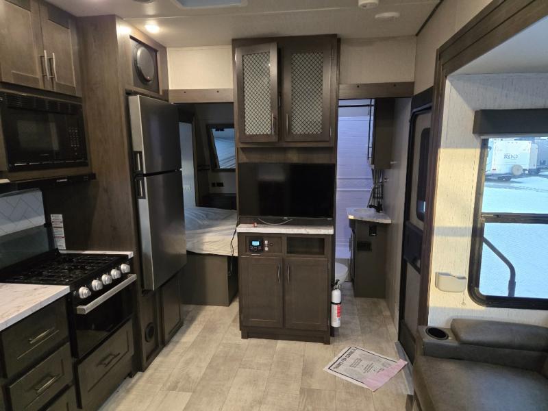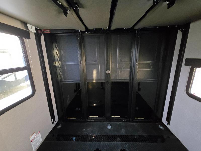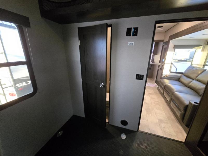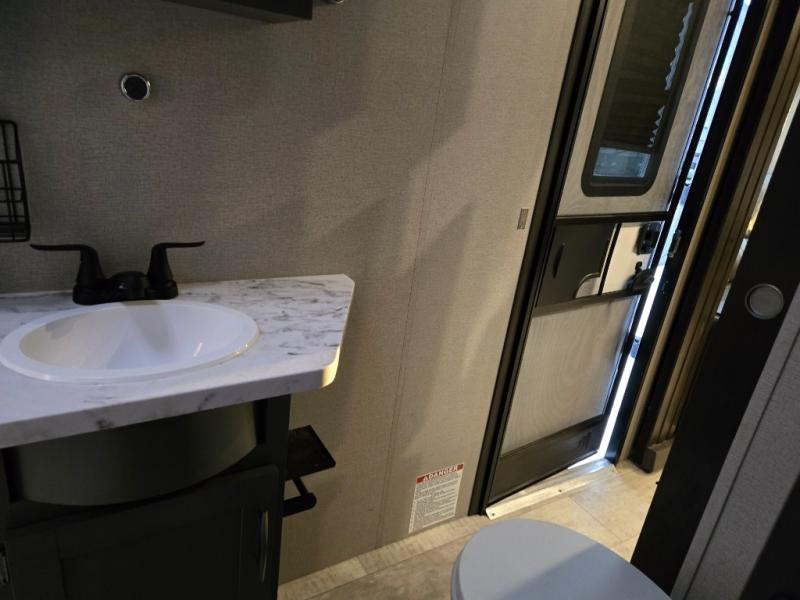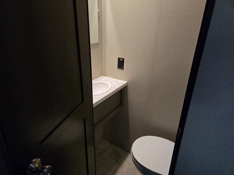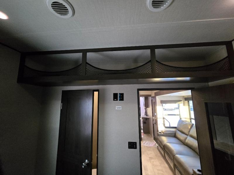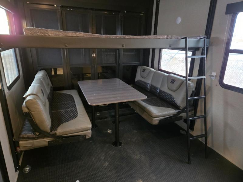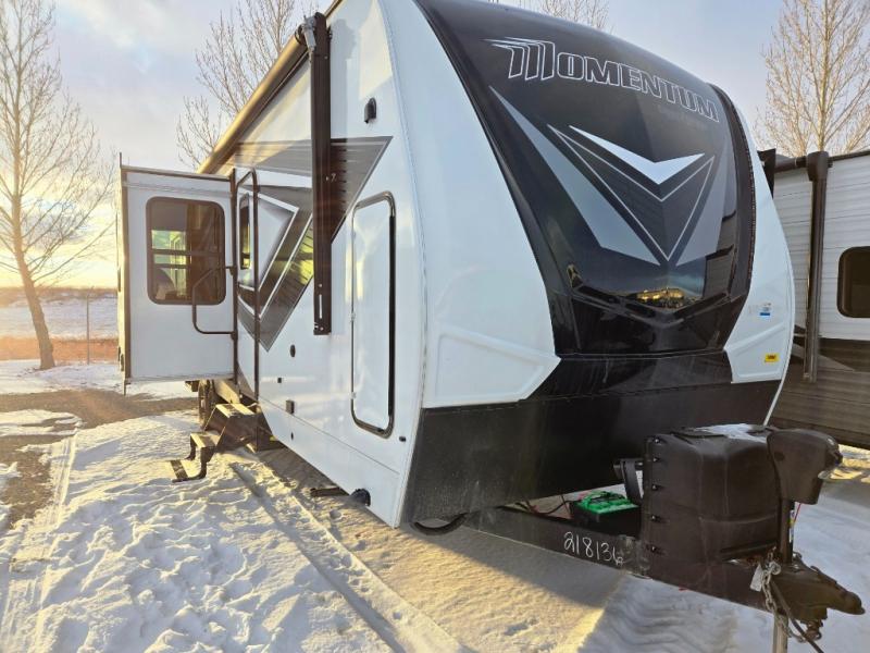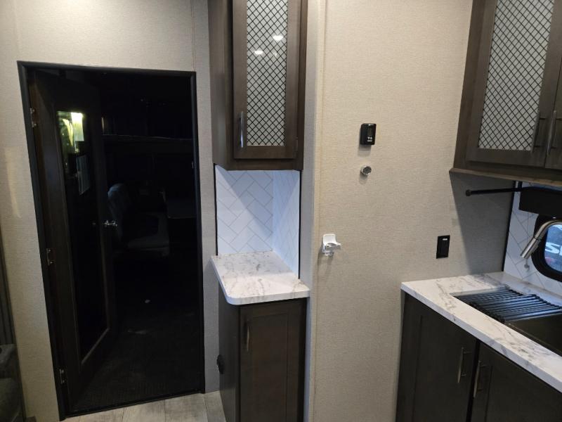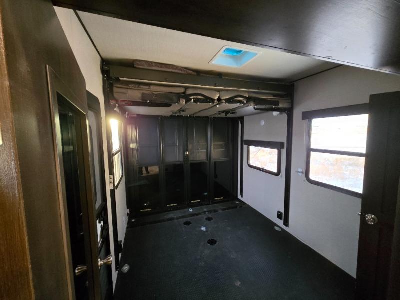 Start your engines for a fun weekend with your toys and your family in this Momentum G-Class toy hauler. The 11' separate garage includes Happi-Jac rollover sofas with a table, a top bunk for the kids, plus a half bath! There is even a second entry door which leads directly into the garage so that you don't have to walk through the entire trailer just to get to your cargo. Now that's helpful! In the front of this unit, you will have your own master suite that has private access to the residential walk-in shower in the dual-entry bathroom. The main living and kitchen area offers everything you need and would want, plus more. This is the one!