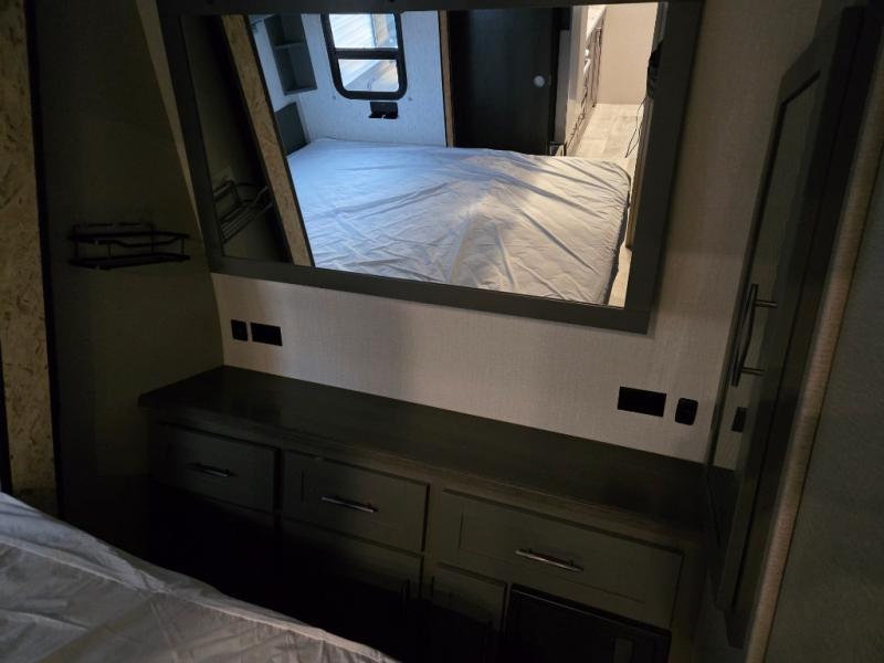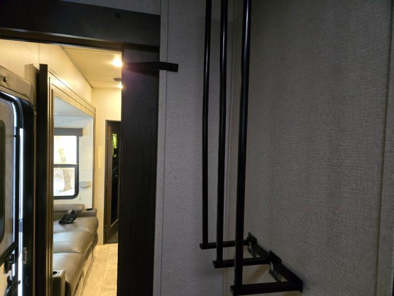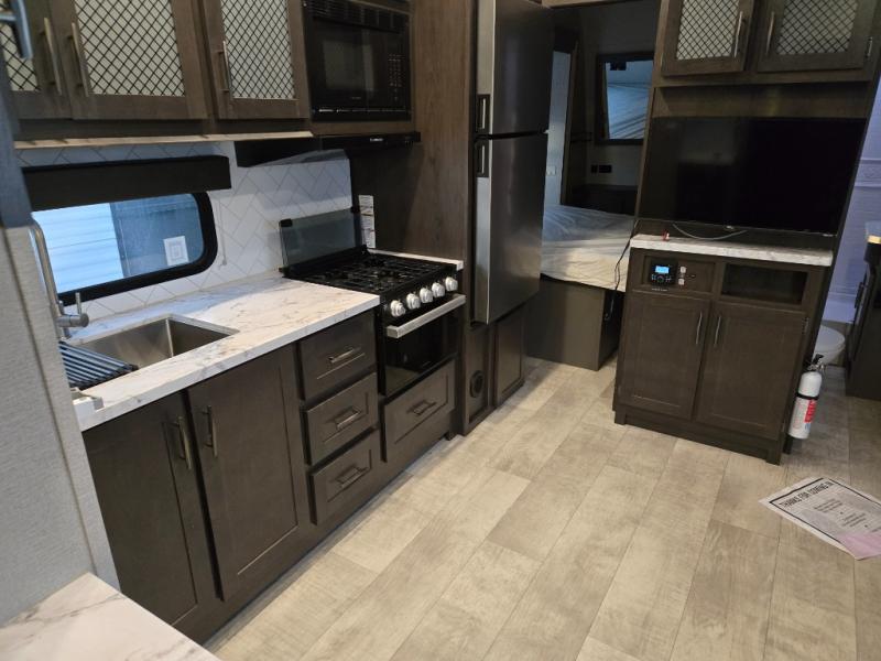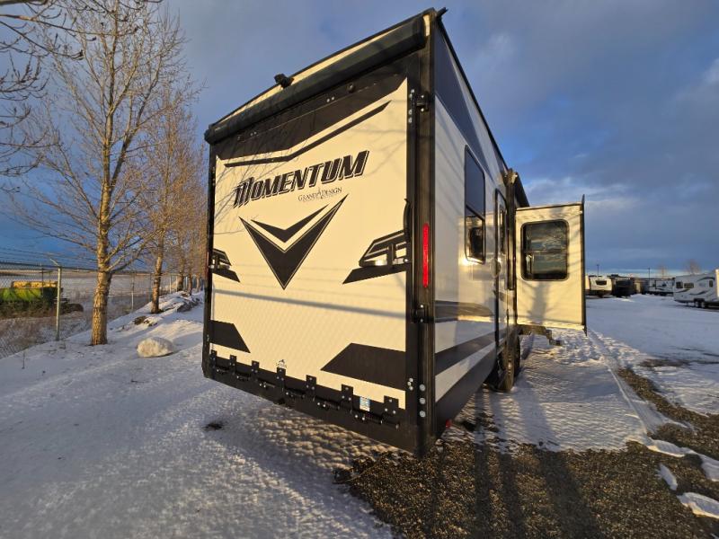 Are you looking for adventure and fun? The Momentum G-Class toy hauler by Grand Design will help you find it! You can explore during any season you choose with the Insulation Package that includes a heated and enclosed underbelly with suspended tanks, a high-capacity furnace, a moisture barrier floor enclosure, and cabinet-mounted heat ducts. Each model includes a 30-gallon fuel station with an interior and exterior gauge, a dovetail rear rend, and 2,500-LB tie-downs anchored into the chassis. Throughout the Momentum G-Class interior, you'll enjoy many comfortable features like large panoramic windows, a shower skylight, USB chargers in the bedroom, and residential cabinetry.