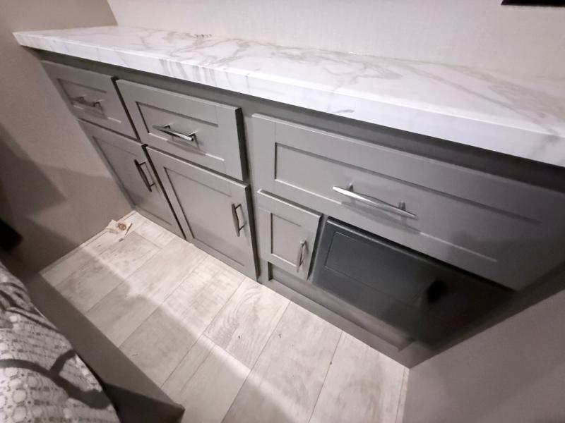 Are you looking for adventure and fun? The Momentum G-Class toy hauler by Grand Design will help you find it! You can explore during any season you choose with the Insulation Package that includes a heated and enclosed underbelly with suspended tanks, a high-capacity furnace, a moisture barrier floor enclosure, and cabinet-mounted heat ducts. Each model includes a 30-gallon fuel station with an interior and exterior gauge, a dovetail rear rend, and 2,500-LB tie-downs anchored into the chassis. Throughout the Momentum G-Class interior, you'll enjoy many comfortable features like large panoramic windows, a shower skylight, USB chargers in the bedroom, and residential cabinetry.