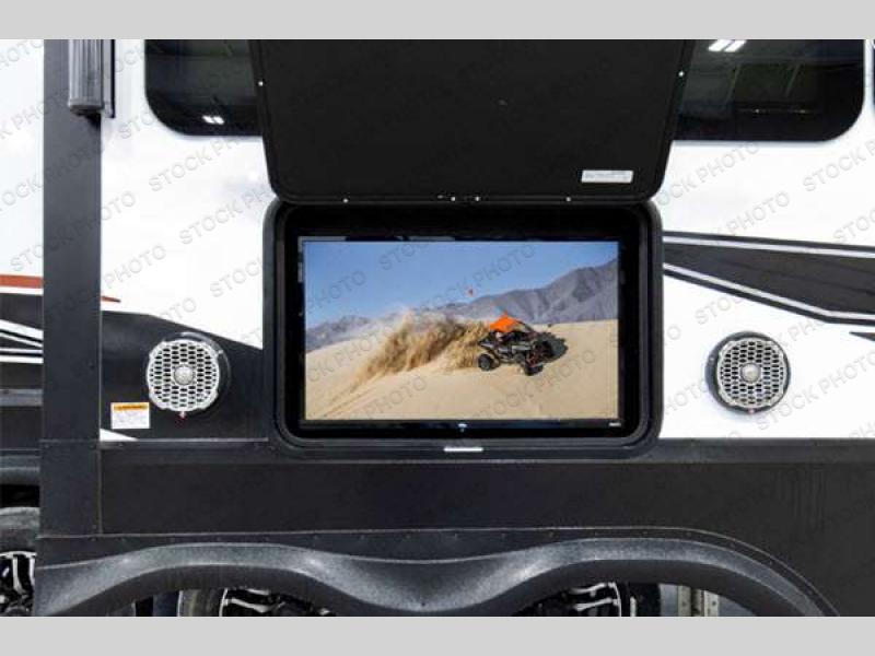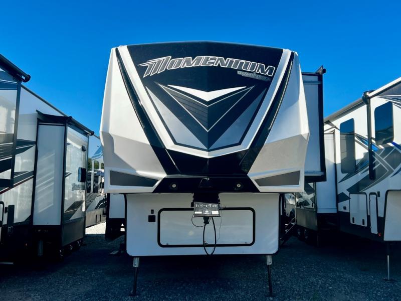 Live big and play even harder with any one of these Momentum M-Class toy hauler fifth wheels by Grand Design! The CRE3000 MORryde® suspension system improves its towability with a smoother tow and better protects from damaging road shock. Unlike many other toy haulers, Momentum features an exclusive garage floor design with an R-40 triple insulation in the garage floors and a Weather-Tek insulation throughout the roof, main floor, and side walls. Pump up the volume and shake things up with the optional Rockford Fosgate speaker package that comes with a 12" subwoofer and a 300W amp. You will also enjoy the fully enclosed fuel pump station, the door-side exterior spray port, and the four mandatory packages full of extra features that will make your next camping adventure luxurious!