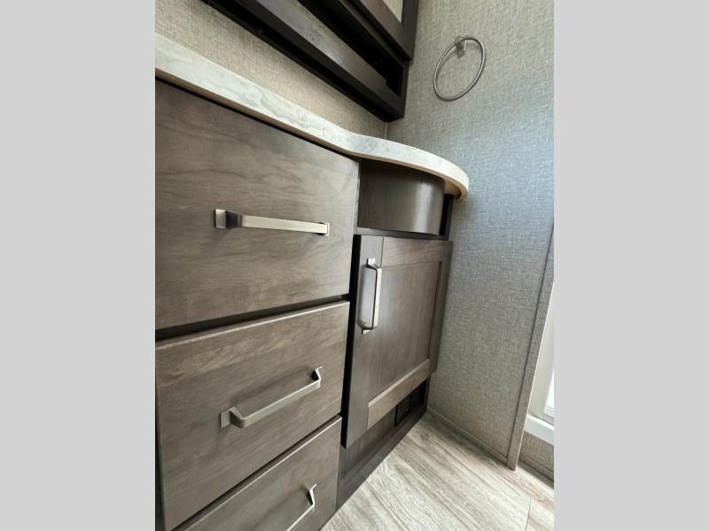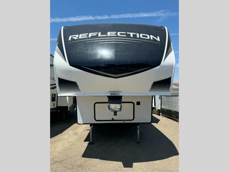 With any Reflection 150 Series fifth wheel by Grand Design, there is more available payload capacity and a broader range of half-ton trucks capable of towing this fifth wheel, and no slider hitch is needed thanks to the 90-degree turning radius which makes them short bed friendly and easier to tow. The mandatory Ultimate Power package provides a "One-Touch" automatic leveling system and a detachable power cord with LED light for easy setup, plus motion sensor pass-through lighting and entry lighting, and the Tire Linc TPMS will help you stay safe on the road. The interior offers residential luxury from the cabinetry and gunstock hardware plus the booth dinette to the residential-style window treatment. Make your refined decision today!