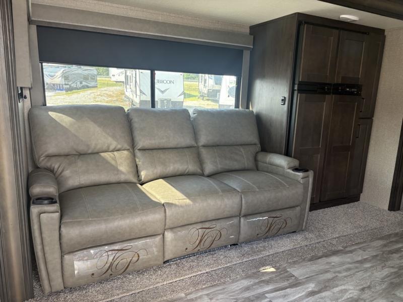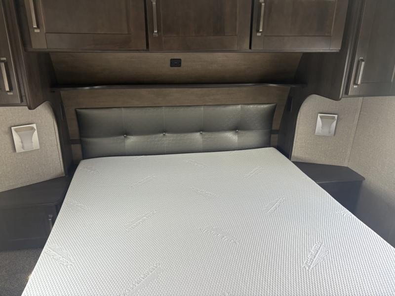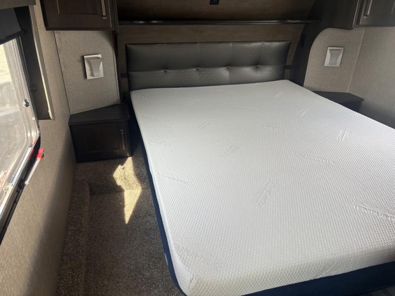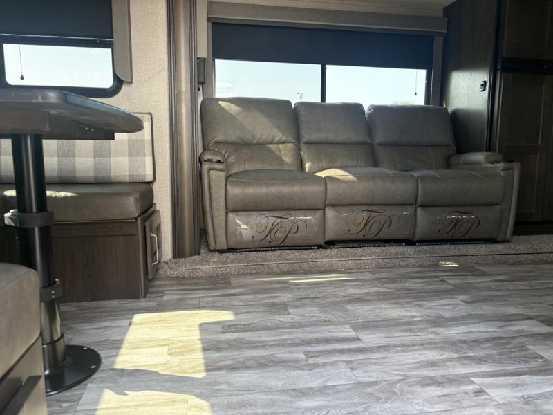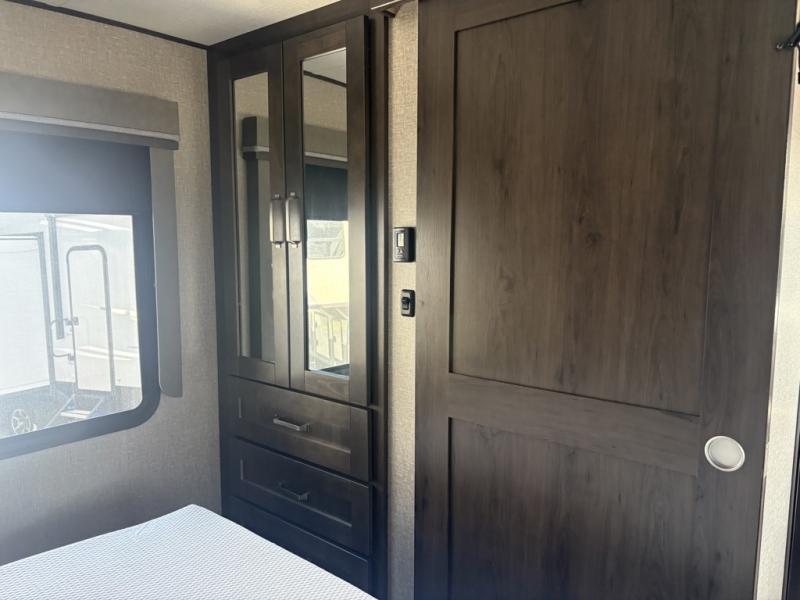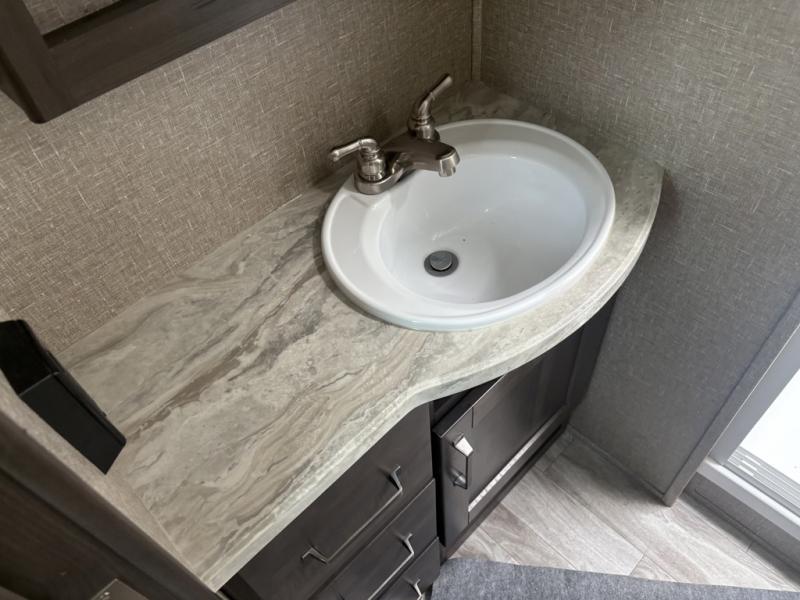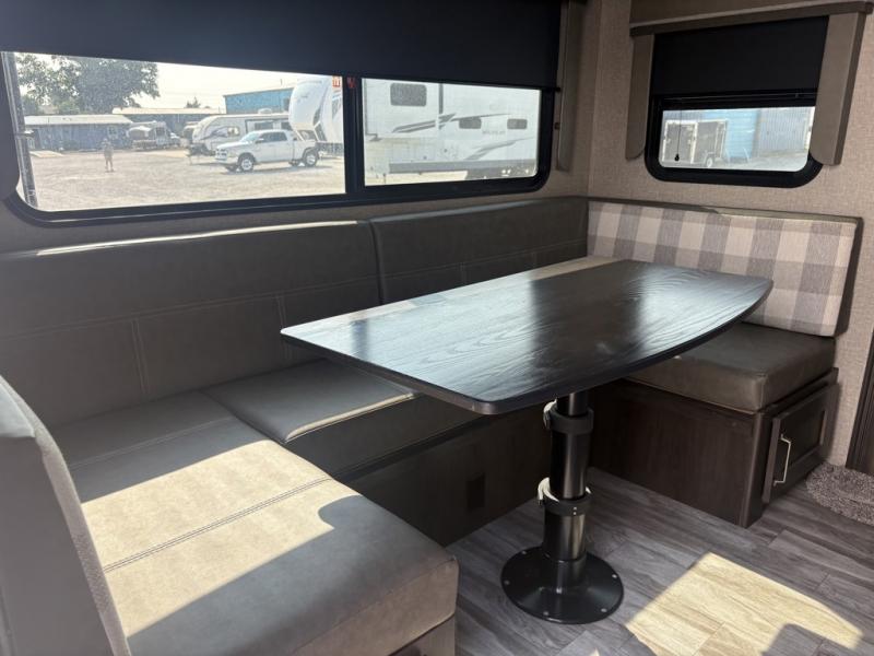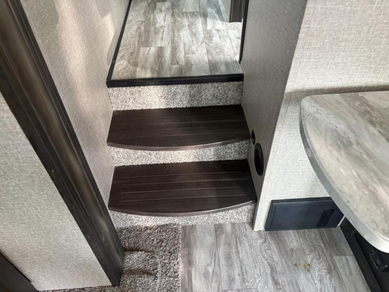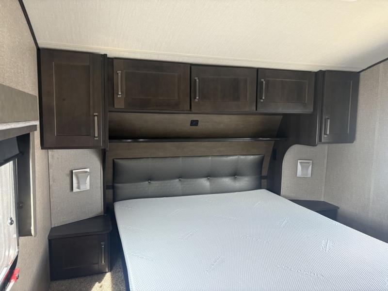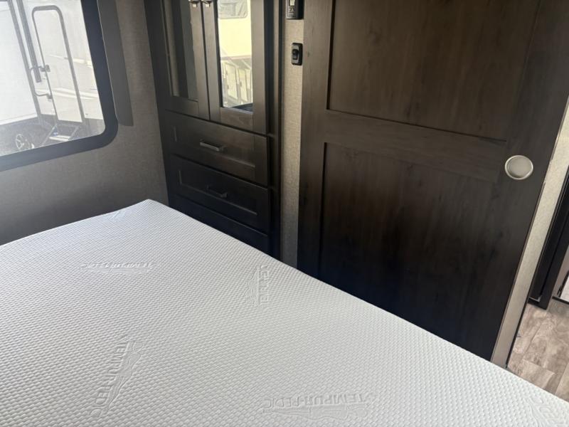 With any Reflection 150 Series fifth wheel by Grand Design, there is more available payload capacity and a broader range of half-ton trucks capable of towing this fifth wheel, and no slider hitch is needed thanks to the 90-degree turning radius which makes them short bed friendly and easier to tow. The mandatory Ultimate Power package provides a "One-Touch" automatic leveling system and a detachable power cord with LED light for easy setup, plus motion sensor pass-through lighting and entry lighting, and the Tire Linc TPMS will help you stay safe on the road. The interior offers residential luxury from the cabinetry and gunstock hardware plus the booth dinette to the residential-style window treatment. Make your refined decision today!