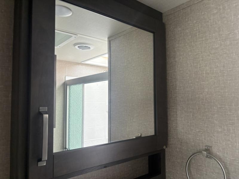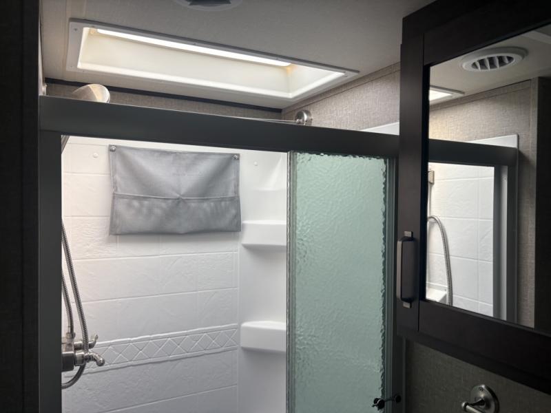 Feel right at home in this Reflection 150 Series with a private bedroom that includes a walk-around queen bed with storage on each side, windows, and a space savings sliding door. The full bathroom offers a walk-in shower, storage for your linens and a sliding door for easy access. When you get hungry, the cook will have an L-shaped kitchen area to make meals, plus full amenities including a 30" microwave, a flip-up counter extension, a pantry for your dry goods and a 16 cu. ft. refrigerator to store lots of food and cold beverages. You can dine at the rear U-shaped dinette lounge and enjoy the view out of all the windows or outside under the 18' electric awning. And the theatre seating will be a nice place to relax and watch the 40" LED HDTV.