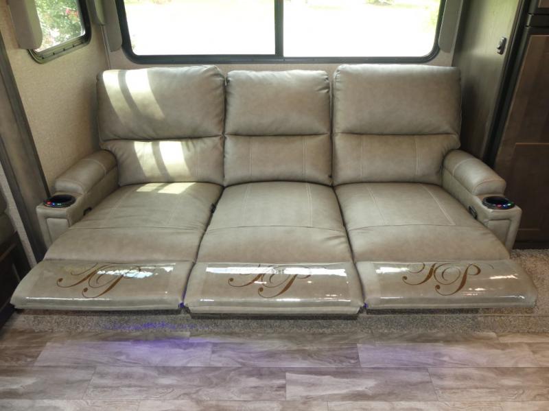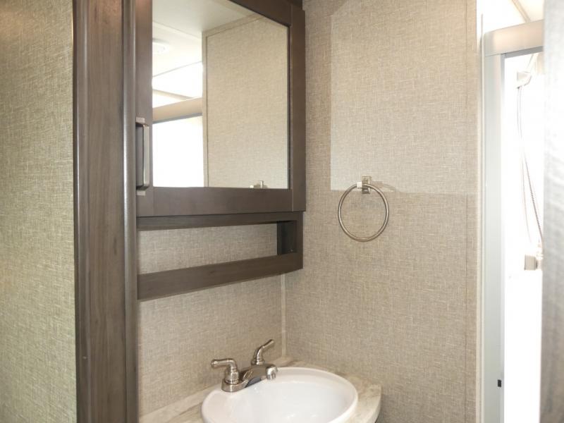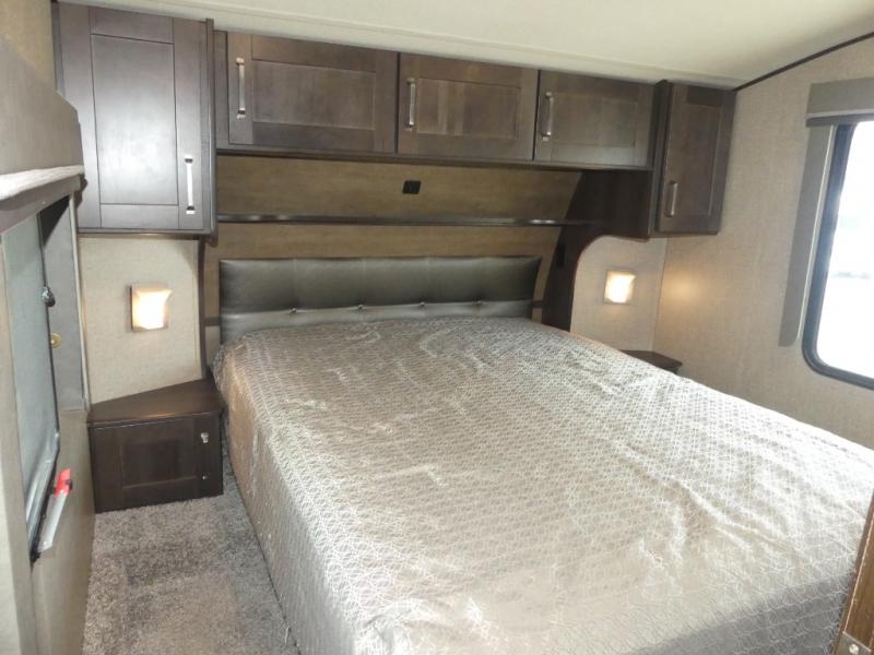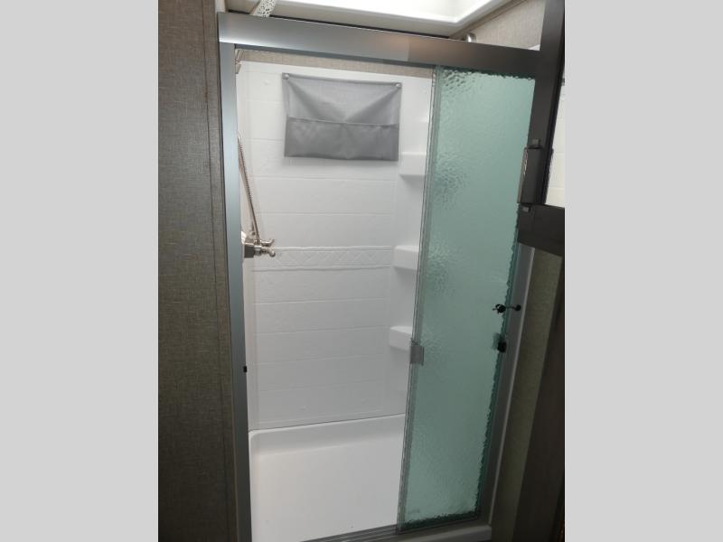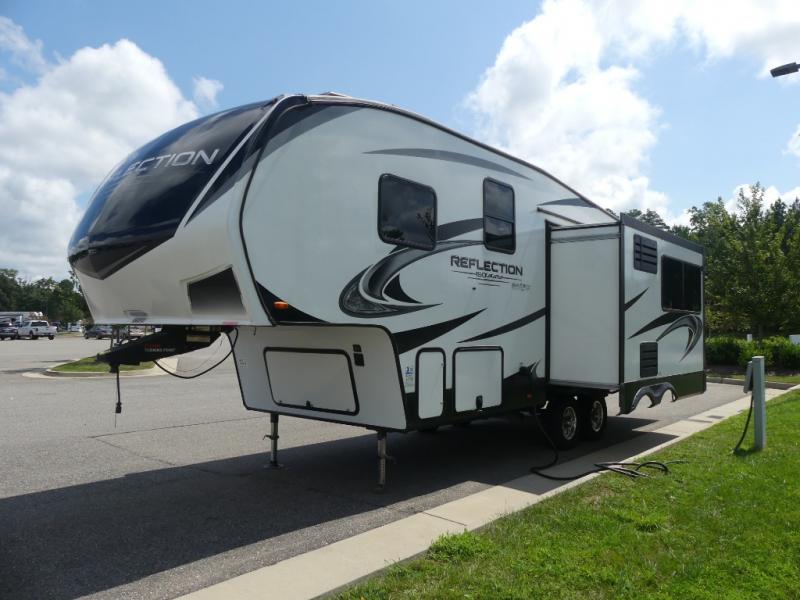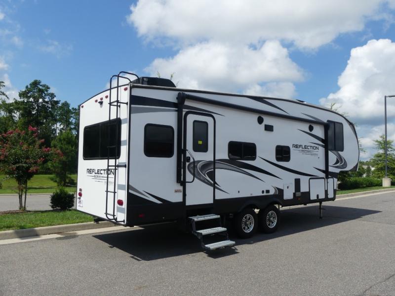 Feel right at home in this Reflection 150 Series with a private bedroom that includes a walk-around queen bed with storage on each side, windows, and a space savings sliding door. The full bathroom offers a walk-in shower, storage for your linens and a sliding door for easy access. When you get hungry, the cook will have an L-shaped kitchen area to make meals, plus full amenities including a 30" microwave, a flip-up counter extension, a pantry for your dry goods and a 16 cu. ft. refrigerator to store lots of food and cold beverages. You can dine at the rear U-shaped dinette lounge and enjoy the view out of all the windows or outside under the 18' electric awning. And the theatre seating will be a nice place to relax and watch the 40" LED HDTV.