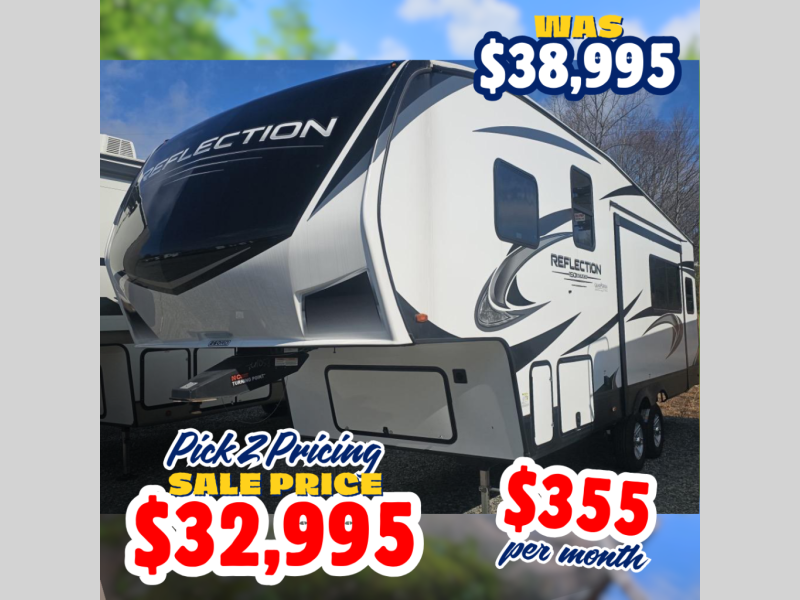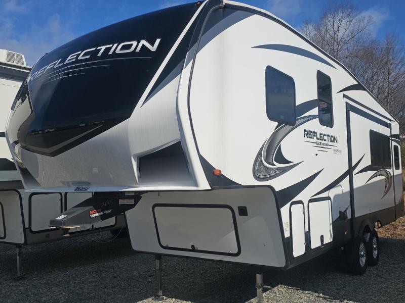 With any Reflection 150 Series fifth wheel by Grand Design, there is more available payload capacity and a broader range of half-ton trucks capable of towing this fifth wheel, and no slider hitch is needed thanks to the 90-degree turning radius which makes them short bed friendly and easier to tow. The mandatory Ultimate Power package provides a "One-Touch" automatic leveling system and a detachable power cord with LED light for easy setup, plus motion sensor pass-through lighting and entry lighting, and the Tire Linc TPMS will help you stay safe on the road. The interior offers residential luxury from the cabinetry and gunstock hardware plus the booth dinette to the residential-style window treatment. Make your refined decision today!