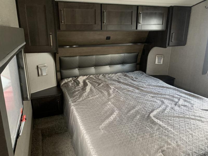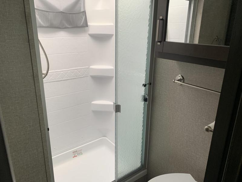 Feel right at home in this Reflection 150 Series with a private bedroom that includes a walk-around queen bed with storage on each side, windows, and a space savings sliding door. The full bathroom offers a walk-in shower, storage for your linens and a sliding door for easy access. When you get hungry, the cook will have an L-shaped kitchen area to make meals, plus full amenities including a 30" microwave, a flip-up counter extension, a pantry for your dry goods and a 16 cu. ft. refrigerator to store lots of food and cold beverages. You can dine at the rear U-shaped dinette lounge and enjoy the view out of all the windows or outside under the 18' electric awning. And the theatre seating will be a nice place to relax and watch the 40" LED HDTV.