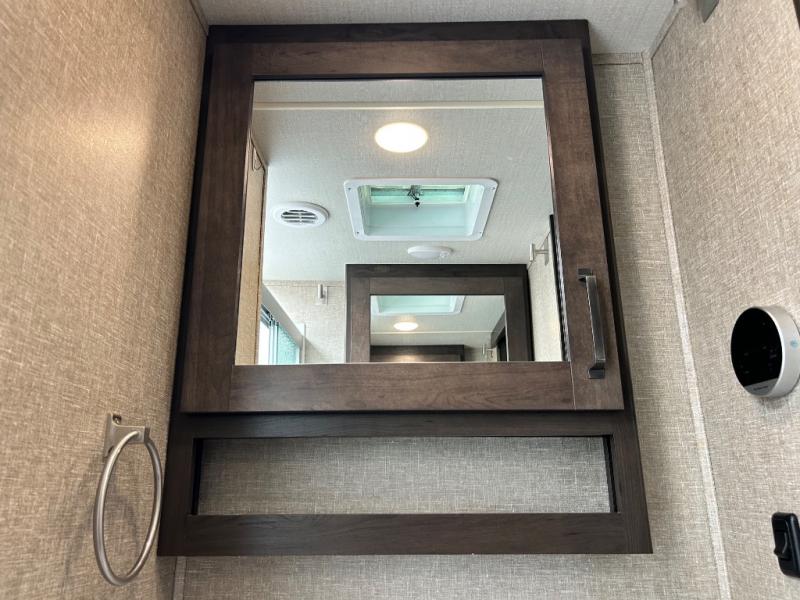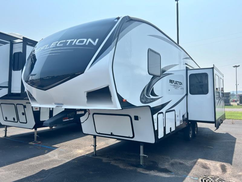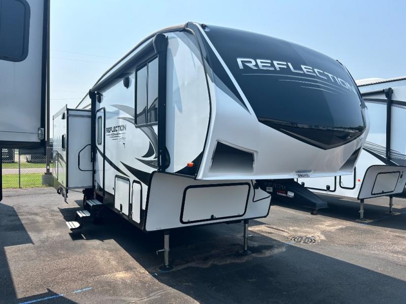With any Reflection 150 Series fifth wheel by Grand Design, there is more available payload capacity and a broader range of half-ton trucks capable of towing this fifth wheel, and no slider hitch is needed thanks to the 90-degree turning radius which makes them short bed friendly and easier to tow. The mandatory Ultimate Power package provides a "One-Touch" automatic leveling system and a detachable power cord with LED light for easy setup, plus motion sensor pass-through lighting and entry lighting, and the Tire Linc TPMS will help you stay safe on the road. The interior offers residential luxury from the cabinetry and gunstock hardware plus the booth dinette to the residential-style window treatment. Make your refined decision today!