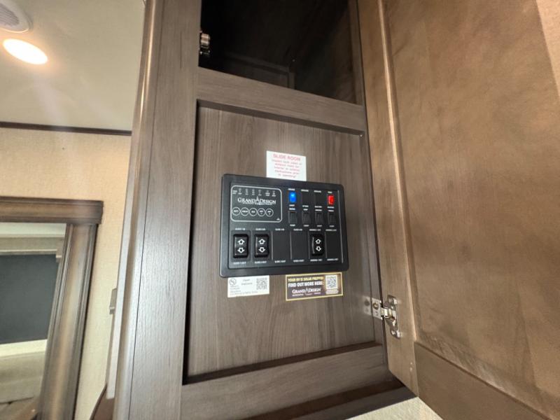 With any Reflection fifth wheels by Grand Design, you will have a 165W solar panel for off-grid camping and a 50 Amp charge controller and inverter prep, a Max Turn radius front cap for easy towing around town and into your campsite, a Universal All-In-One Docking Station, unobstructed pass-through storage, and Goodyear E-rated tires. Some other top features include a chef's kitchen with a 30" stainless steel microwave and residential cooktop, a USB charging station, and the ductless "Evenflow" heating system with no vents in the floor to collect debris. Each is constructed of high gloss gel coat exterior sidewalls, residential 5" truss rafters, walk-on roof decking, a fiberglass and radiant foil roof and front cap insulation plus laminated aluminum framed side walls, rear wall, roof and end walls in slide rooms. Choose luxury, value and towability over all the others, take home a Reflection of your good taste!