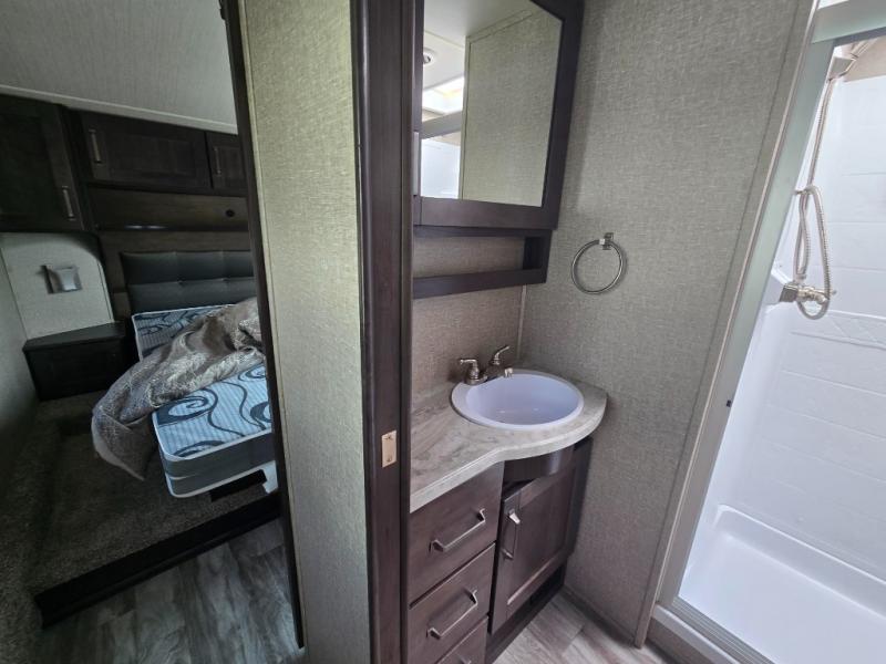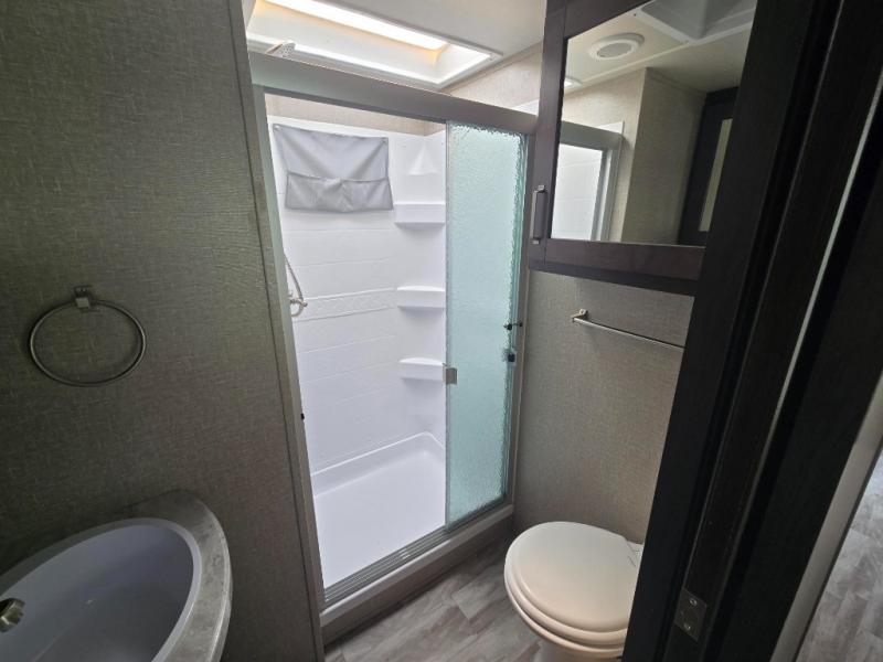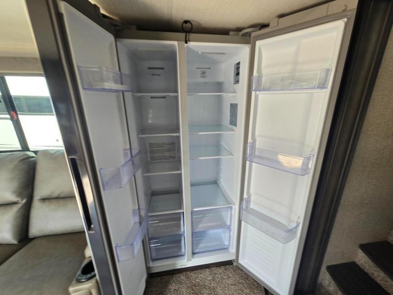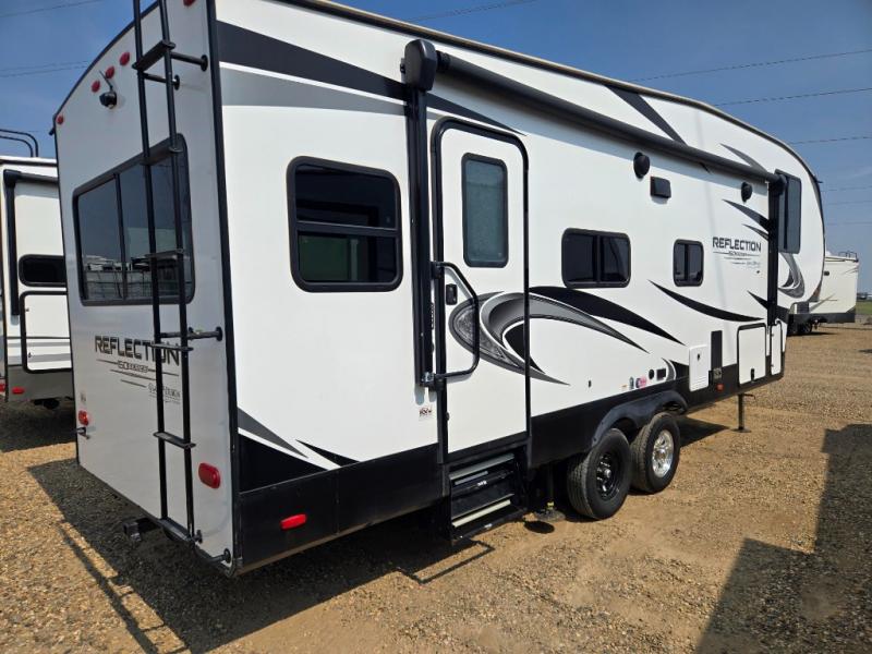 Feel right at home in this Reflection 150 Series with a private bedroom that includes a walk-around queen bed with storage on each side, windows, and a space savings sliding door. The full bathroom offers a walk-in shower, storage for your linens and a sliding door for easy access. When you get hungry, the cook will have an L-shaped kitchen area to make meals, plus full amenities including a 30" microwave, a flip-up counter extension, a pantry for your dry goods and a 16 cu. ft. refrigerator to store lots of food and cold beverages. You can dine at the rear U-shaped dinette lounge and enjoy the view out of all the windows or outside under the 18' electric awning. And the theatre seating will be a nice place to relax and watch the 40" LED HDTV.