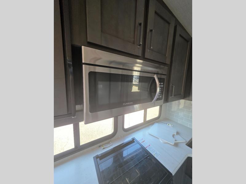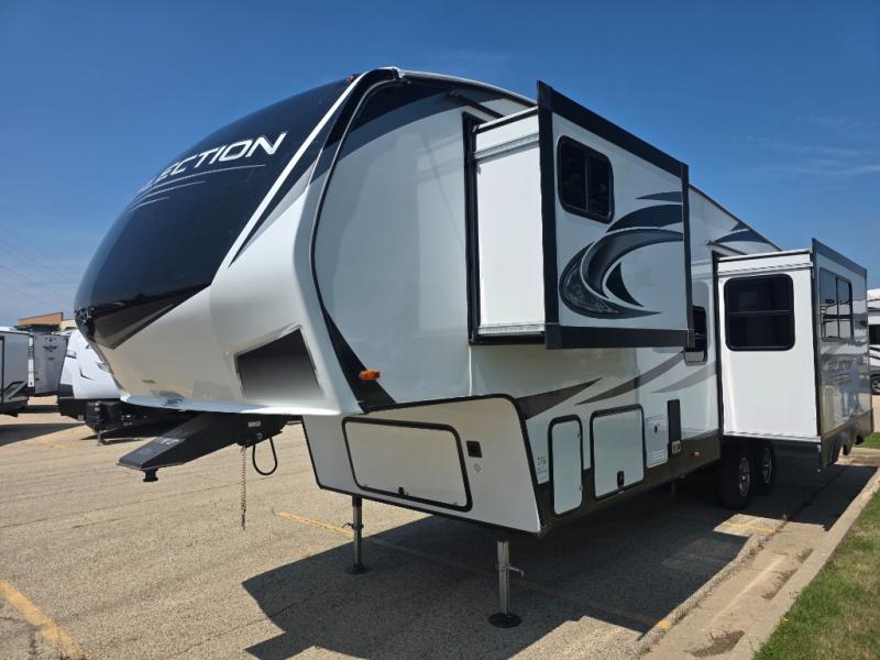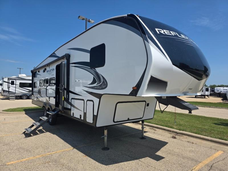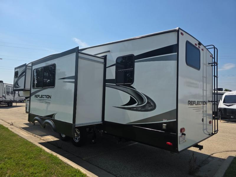 With any Reflection fifth wheels by Grand Design, you will have a 165W solar panel for off-grid camping and a 50 Amp charge controller and inverter prep, a Max Turn radius front cap for easy towing around town and into your campsite, a Universal All-In-One Docking Station, unobstructed pass-through storage, and Goodyear E-rated tires. Some other top features include a chef's kitchen with a 30" stainless steel microwave and residential cooktop, a USB charging station, and the ductless "Evenflow" heating system with no vents in the floor to collect debris. Each is constructed of high gloss gel coat exterior sidewalls, residential 5" truss rafters, walk-on roof decking, a fiberglass and radiant foil roof and front cap insulation plus laminated aluminum framed side walls, rear wall, roof and end walls in slide rooms. Choose luxury, value and towability over all the others, take home a Reflection of your good taste!