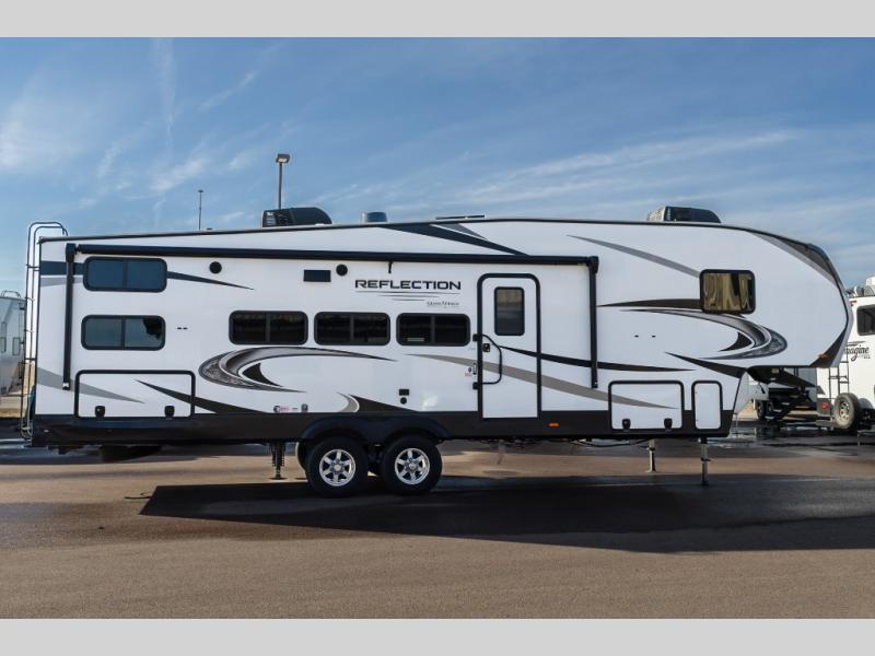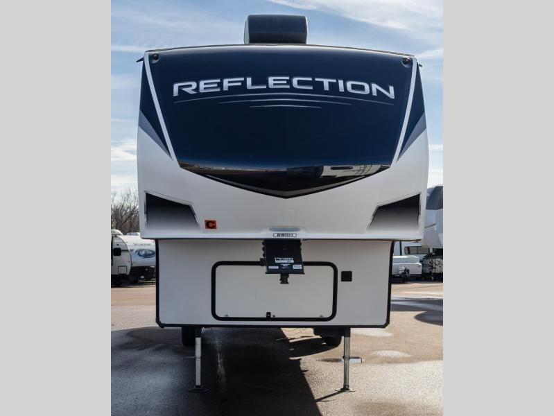 With any Reflection fifth wheels by Grand Design, you will have a 165W solar panel for off-grid camping and a 50 Amp charge controller and inverter prep, a Max Turn radius front cap for easy towing around town and into your campsite, a Universal All-In-One Docking Station, unobstructed pass-through storage, and Goodyear E-rated tires. Some other top features include a chef's kitchen with a 30" stainless steel microwave and residential cooktop, a USB charging station, and the ductless "Evenflow" heating system with no vents in the floor to collect debris. Each is constructed of high gloss gel coat exterior sidewalls, residential 5" truss rafters, walk-on roof decking, a fiberglass and radiant foil roof and front cap insulation plus laminated aluminum framed side walls, rear wall, roof and end walls in slide rooms. Choose luxury, value and towability over all the others, take home a Reflection of your good taste!