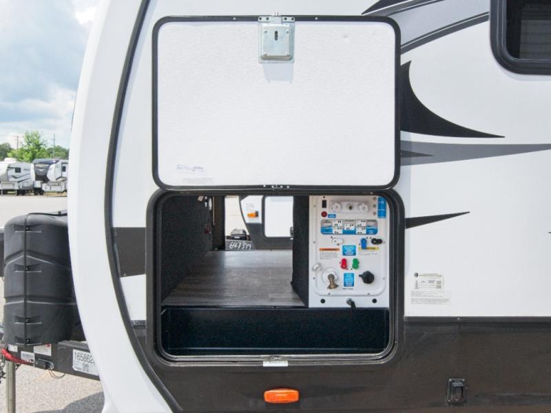 With a 165W solar panel, 50 Amp charge controller, and inverter prep, you're ready for off-grid adventures. The ductless “Evenflow” heating system, Goodyear Endurance tires, and gel coat exterior ensure durability and comfort in any season.
