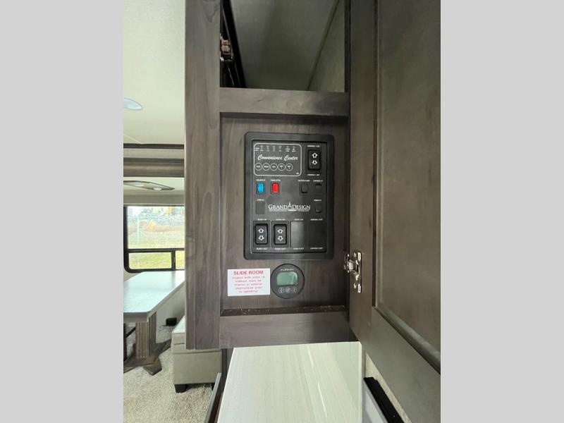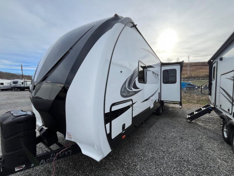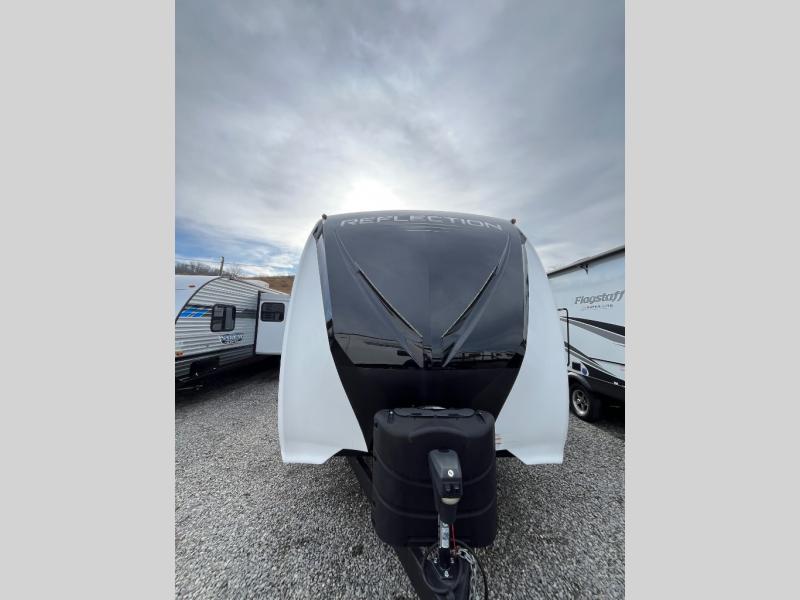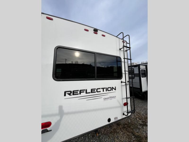 With any Reflection travel trailers by Grand Design, you will have a 165W solar panel for off-grid camping and a 50 Amp charge controller and inverter prep, a Universal All-In-One Docking Station, unobstructed pass-through storage, and Goodyear Endurance tires. Some other top features include the 30" stainless steel microwave, the maximum 7-foot headroom, and the ductless "Evenflow" heating system with no vents in the floor to collect debris. Each is constructed of gel coat exterior sidewalls, residential 5" truss rafters, walk-on roof decking, a fiberglass and radiant foil roof and front cap insulation plus laminated aluminum framed side walls, roof and end walls in slide rooms. Choose luxury, value and towability over all the others, take home a Reflection of your good taste!