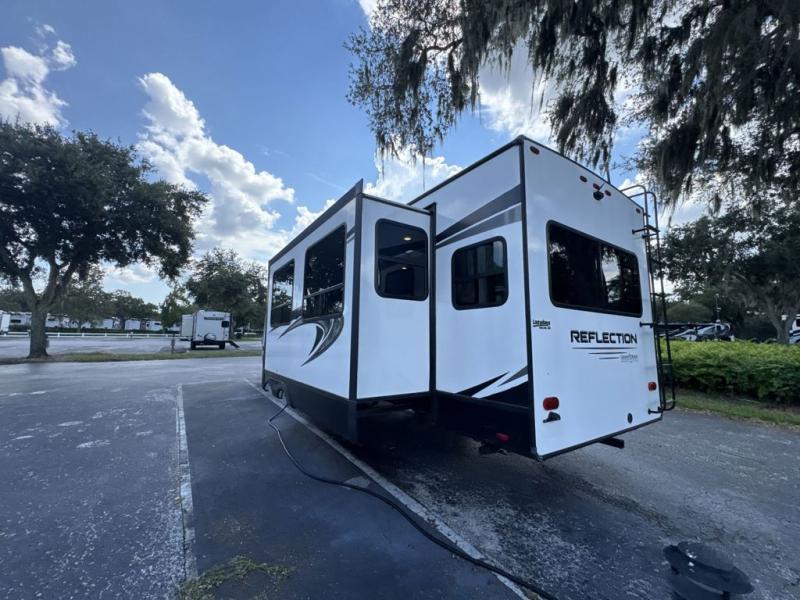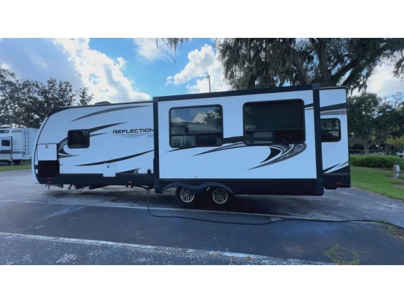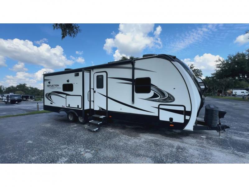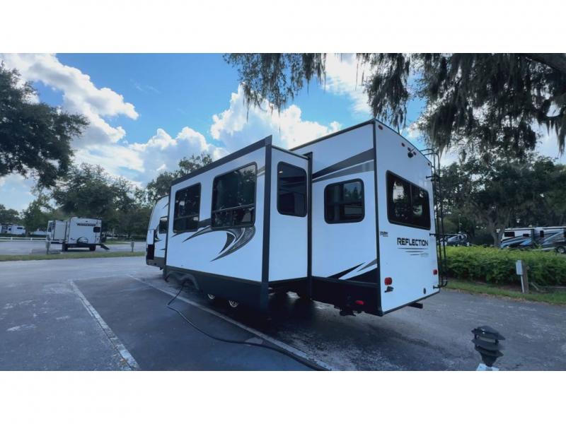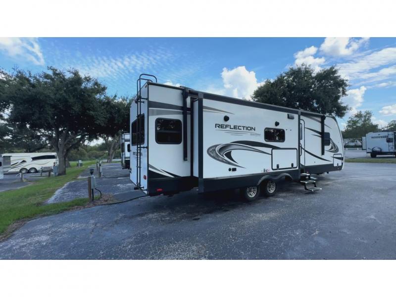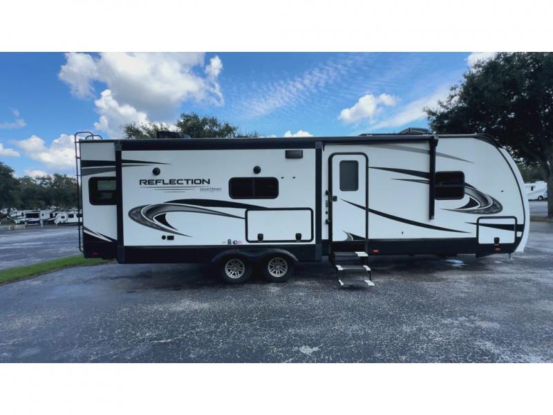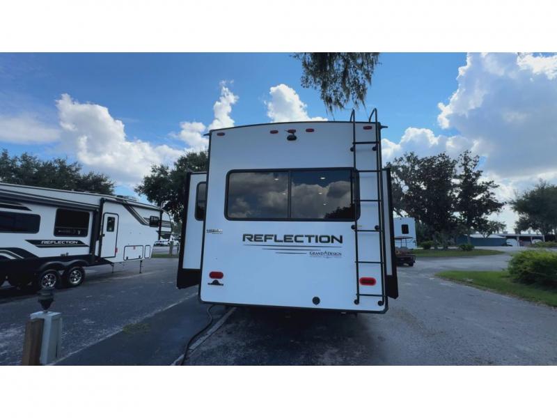 With any Reflection travel trailers by Grand Design, you will have a 165W solar panel for off-grid camping and a 50 Amp charge controller and inverter prep, a Universal All-In-One Docking Station, unobstructed pass-through storage, and Goodyear Endurance tires. Some other top features include the 30" stainless steel microwave, the maximum 7-foot headroom, and the ductless "Evenflow" heating system with no vents in the floor to collect debris. Each is constructed of gel coat exterior sidewalls, residential 5" truss rafters, walk-on roof decking, a fiberglass and radiant foil roof and front cap insulation plus laminated aluminum framed side walls, roof and end walls in slide rooms. Choose luxury, value and towability over all the others, take home a Reflection of your good taste!