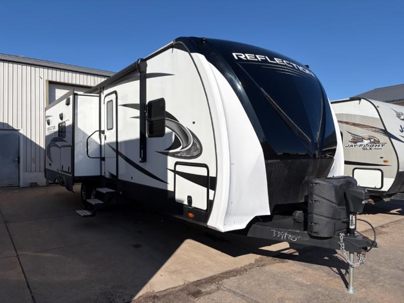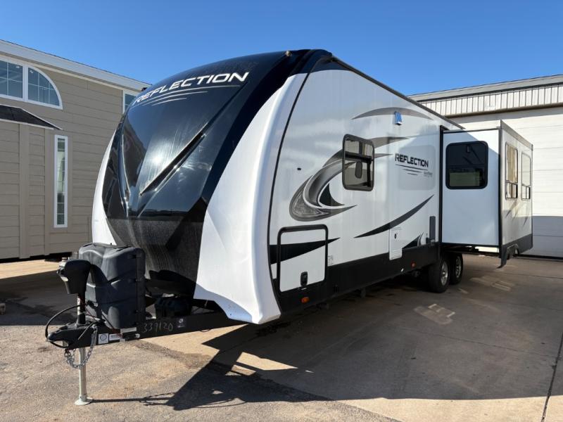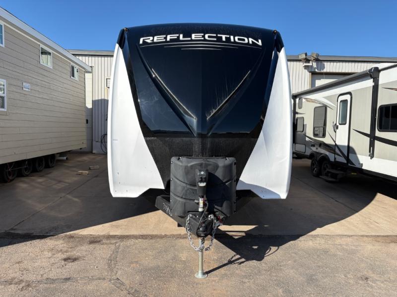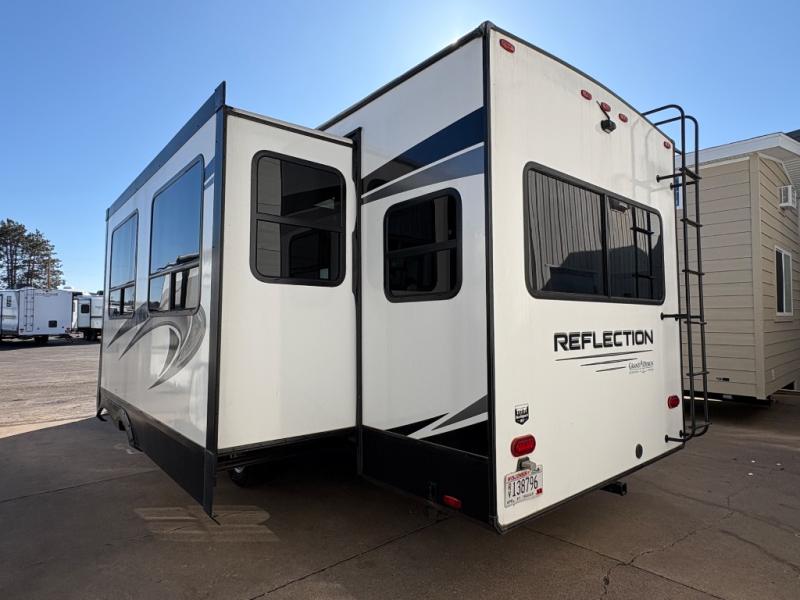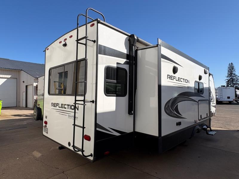 With any Reflection travel trailers by Grand Design, you will have a 165W solar panel for off-grid camping and a 50 Amp charge controller and inverter prep, a Universal All-In-One Docking Station, unobstructed pass-through storage, and Goodyear Endurance tires. Some other top features include the 30" stainless steel microwave, the maximum 7-foot headroom, and the ductless "Evenflow" heating system with no vents in the floor to collect debris. Each is constructed of gel coat exterior sidewalls, residential 5" truss rafters, walk-on roof decking, a fiberglass and radiant foil roof and front cap insulation plus laminated aluminum framed side walls, roof and end walls in slide rooms. Choose luxury, value and towability over all the others, take home a Reflection of your good taste!
