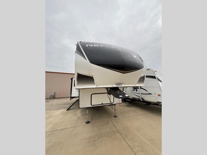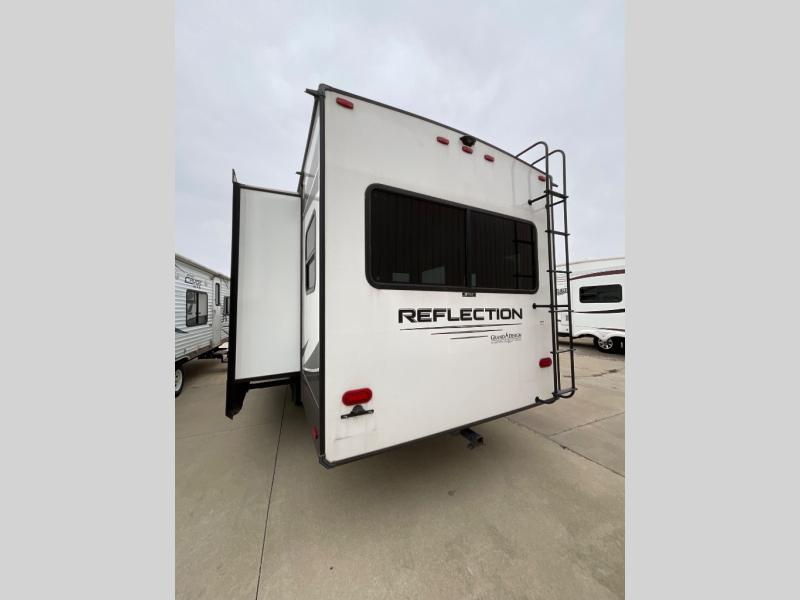 With any Reflection fifth wheels by Grand Design, you will have a 165W solar panel for off-grid camping and a 50 Amp charge controller and inverter prep, a Max Turn radius front cap for easy towing around town and into your campsite, a Universal All-In-One Docking Station, unobstructed pass-through storage, and Goodyear E-rated tires. Some other top features include a chef's kitchen with a 30" stainless steel microwave and residential cooktop, a USB charging station, and the ductless "Evenflow" heating system with no vents in the floor to collect debris. Each is constructed of high gloss gel coat exterior sidewalls, residential 5" truss rafters, walk-on roof decking, a fiberglass and radiant foil roof and front cap insulation plus laminated aluminum framed side walls, rear wall, roof and end walls in slide rooms. Choose luxury, value and towability over all the others, take home a Reflection of your good taste!