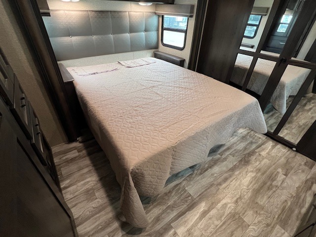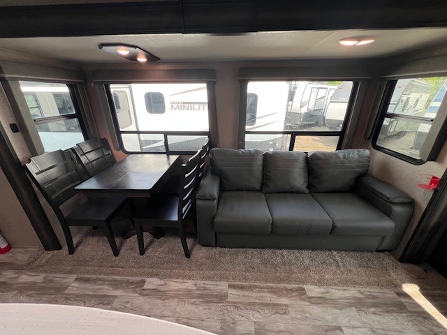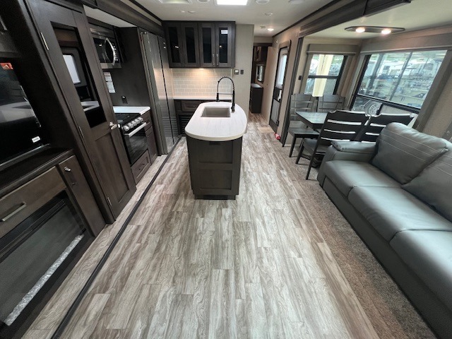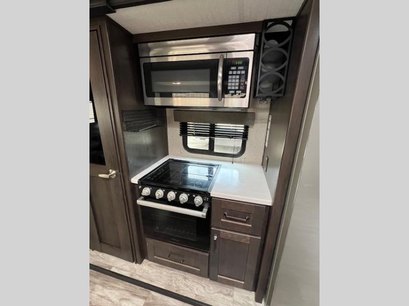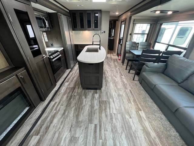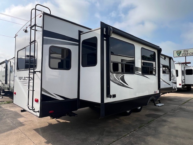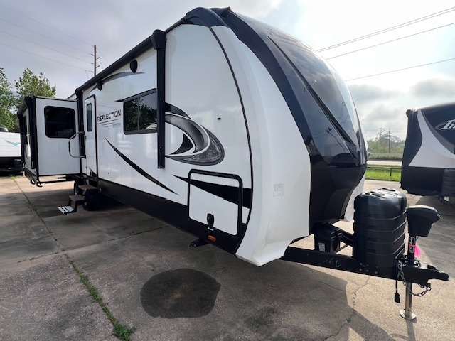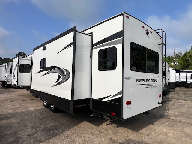 With any Reflection travel trailers by Grand Design, you will have a 165W solar panel for off-grid camping and a 50 Amp charge controller and inverter prep, a Universal All-In-One Docking Station, unobstructed pass-through storage, and Goodyear Endurance tires. Some other top features include the 30" stainless steel microwave, the maximum 7-foot headroom, and the ductless "Evenflow" heating system with no vents in the floor to collect debris. Each is constructed of gel coat exterior sidewalls, residential 5" truss rafters, walk-on roof decking, a fiberglass and radiant foil roof and front cap insulation plus laminated aluminum framed side walls, roof and end walls in slide rooms. Choose luxury, value and towability over all the others, take home a Reflection of your good taste!