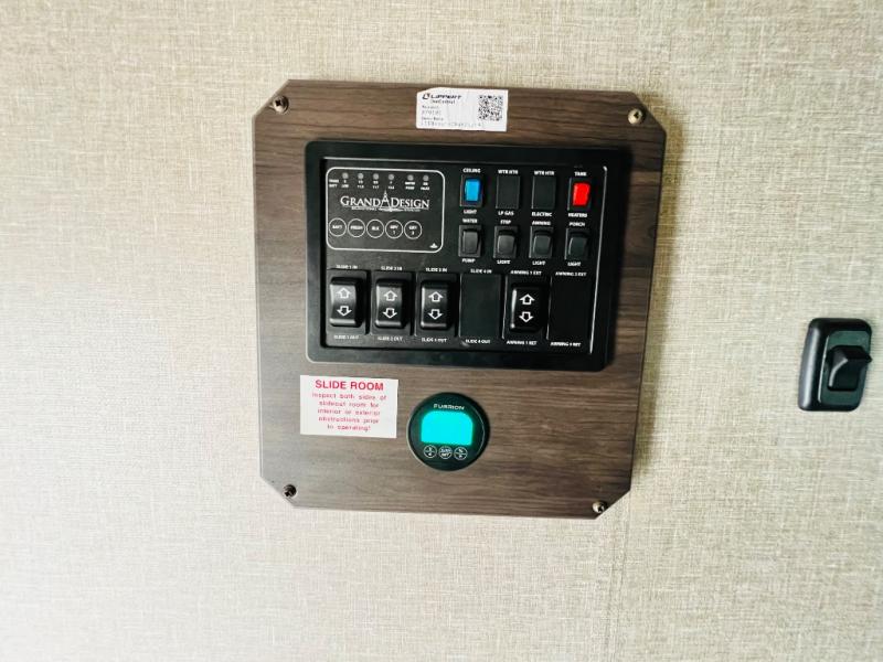 With any Reflection fifth wheels by Grand Design, you will have a 165W solar panel for off-grid camping and a 50 Amp charge controller and inverter prep, a Max Turn radius front cap for easy towing around town and into your campsite, a Universal All-In-One Docking Station, unobstructed pass-through storage, and Goodyear E-rated tires. Some other top features include a chef's kitchen with a 30" stainless steel microwave and residential cooktop, a USB charging station, and the ductless "Evenflow" heating system with no vents in the floor to collect debris. Each is constructed of high gloss gel coat exterior sidewalls, residential 5" truss rafters, walk-on roof decking, a fiberglass and radiant foil roof and front cap insulation plus laminated aluminum framed side walls, rear wall, roof and end walls in slide rooms. Choose luxury, value and towability over all the others, take home a Reflection of your good taste!