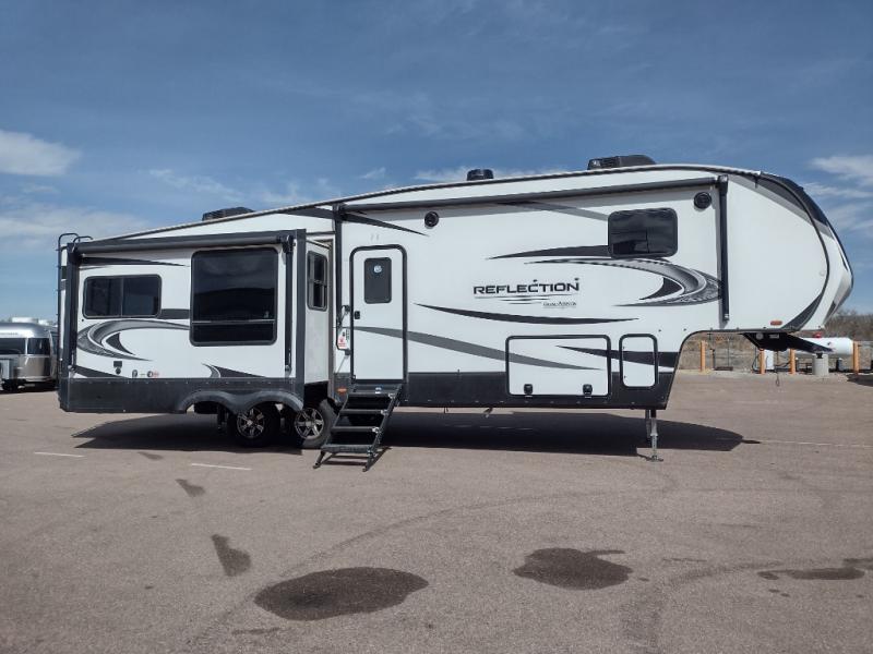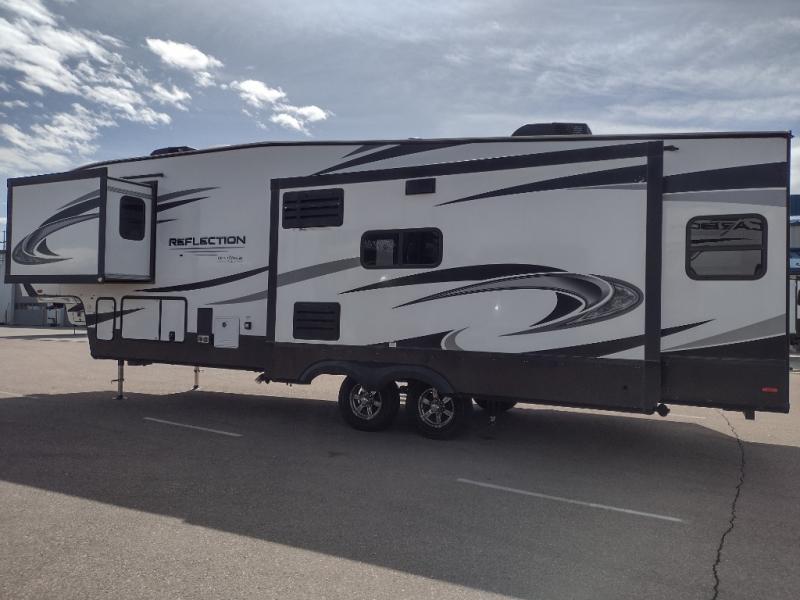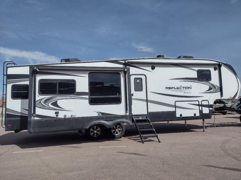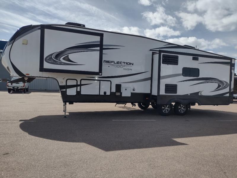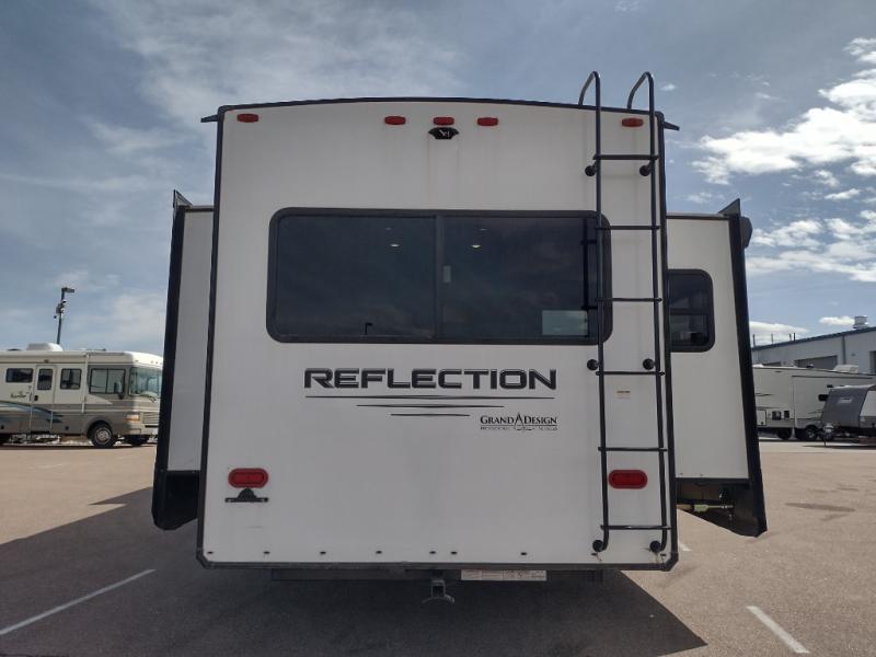 With any Reflection fifth wheels by Grand Design, you will have a 165W solar panel for off-grid camping and a 50 Amp charge controller and inverter prep, a Max Turn radius front cap for easy towing around town and into your campsite, a Universal All-In-One Docking Station, unobstructed pass-through storage, and Goodyear E-rated tires. Some other top features include a chef's kitchen with a 30" stainless steel microwave and residential cooktop, a USB charging station, and the ductless "Evenflow" heating system with no vents in the floor to collect debris. Each is constructed of high gloss gel coat exterior sidewalls, residential 5" truss rafters, walk-on roof decking, a fiberglass and radiant foil roof and front cap insulation plus laminated aluminum framed side walls, rear wall, roof and end walls in slide rooms. Choose luxury, value and towability over all the others, take home a Reflection of your good taste!