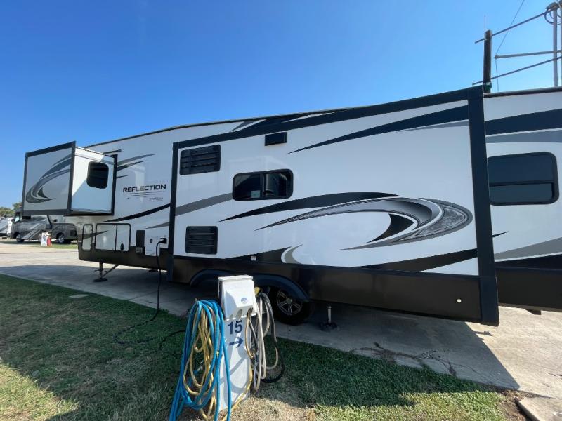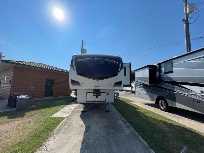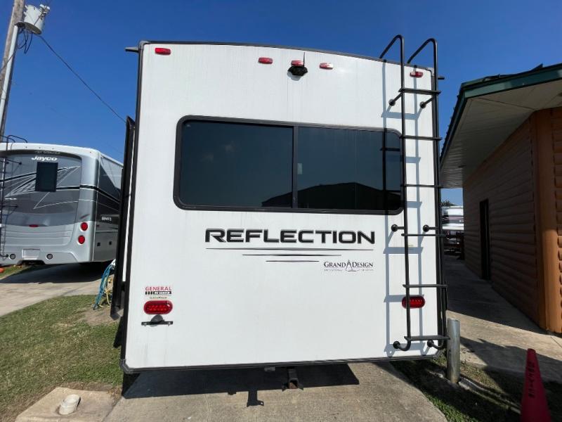With any Reflection fifth wheels by Grand Design, you will have a 165W solar panel for off-grid camping and a 50 Amp charge controller and inverter prep, a Max Turn radius front cap for easy towing around town and into your campsite, a Universal All-In-One Docking Station, unobstructed pass-through storage, and Goodyear E-rated tires. Some other top features include a chef's kitchen with a 30" stainless steel microwave and residential cooktop, a USB charging station, and the ductless "Evenflow" heating system with no vents in the floor to collect debris. Each is constructed of high gloss gel coat exterior sidewalls, residential 5" truss rafters, walk-on roof decking, a fiberglass and radiant foil roof and front cap insulation plus laminated aluminum framed side walls, rear wall, roof and end walls in slide rooms. Choose luxury, value and towability over all the others, take home a Reflection of your good taste!