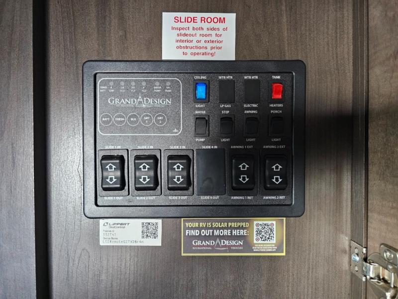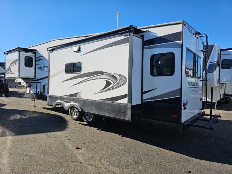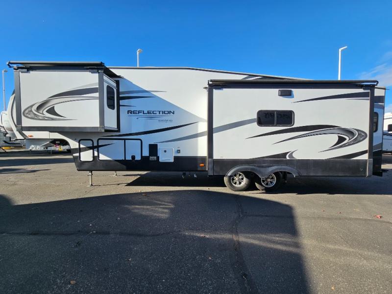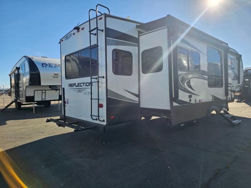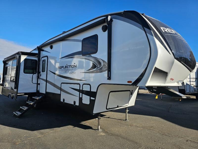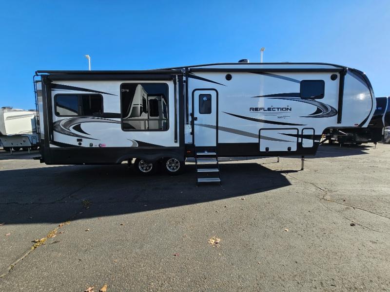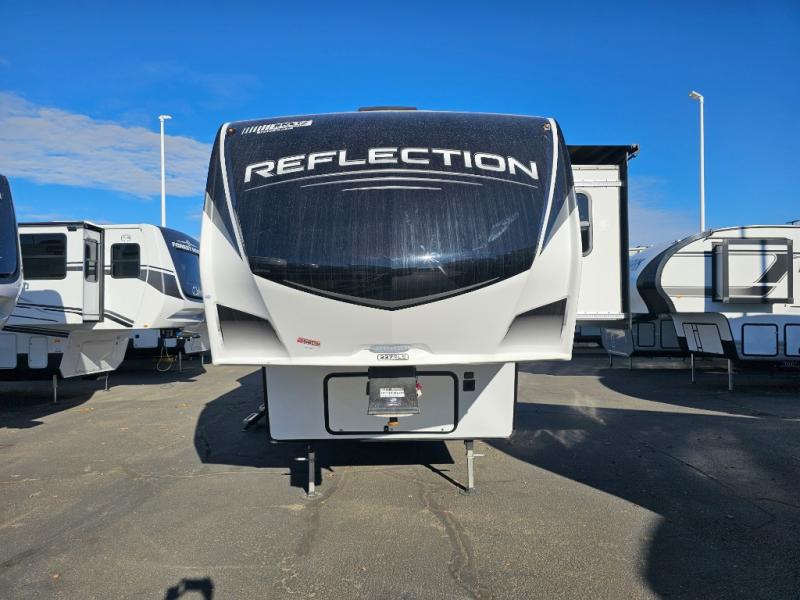 With any Reflection fifth wheels by Grand Design, you will have a 165W solar panel for off-grid camping and a 50 Amp charge controller and inverter prep, a Max Turn radius front cap for easy towing around town and into your campsite, a Universal All-In-One Docking Station, unobstructed pass-through storage, and Goodyear E-rated tires. Some other top features include a chef's kitchen with a 30" stainless steel microwave and residential cooktop, a USB charging station, and the ductless "Evenflow" heating system with no vents in the floor to collect debris. Each is constructed of high gloss gel coat exterior sidewalls, residential 5" truss rafters, walk-on roof decking, a fiberglass and radiant foil roof and front cap insulation plus laminated aluminum framed side walls, rear wall, roof and end walls in slide rooms. Choose luxury, value and towability over all the others, take home a Reflection of your good taste!